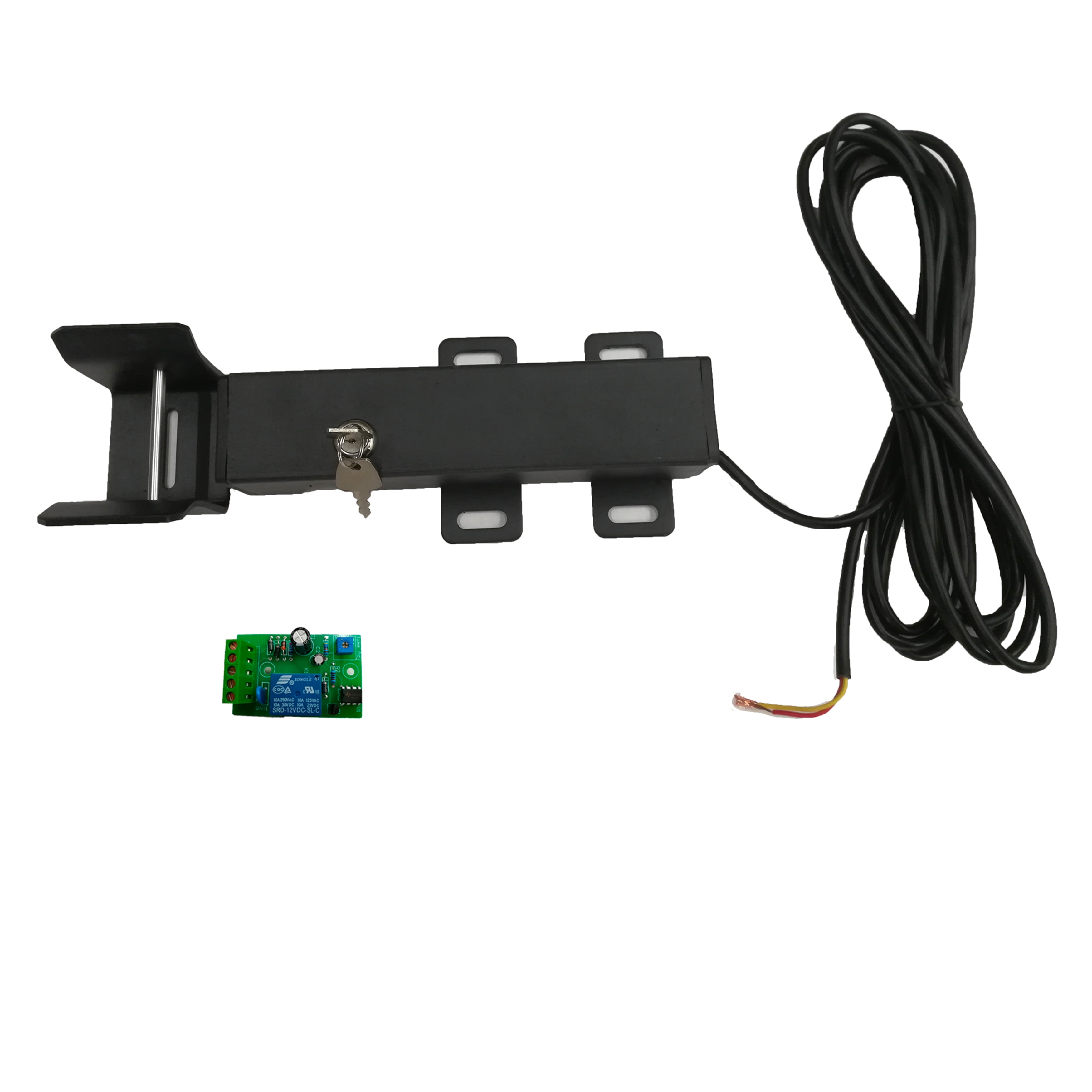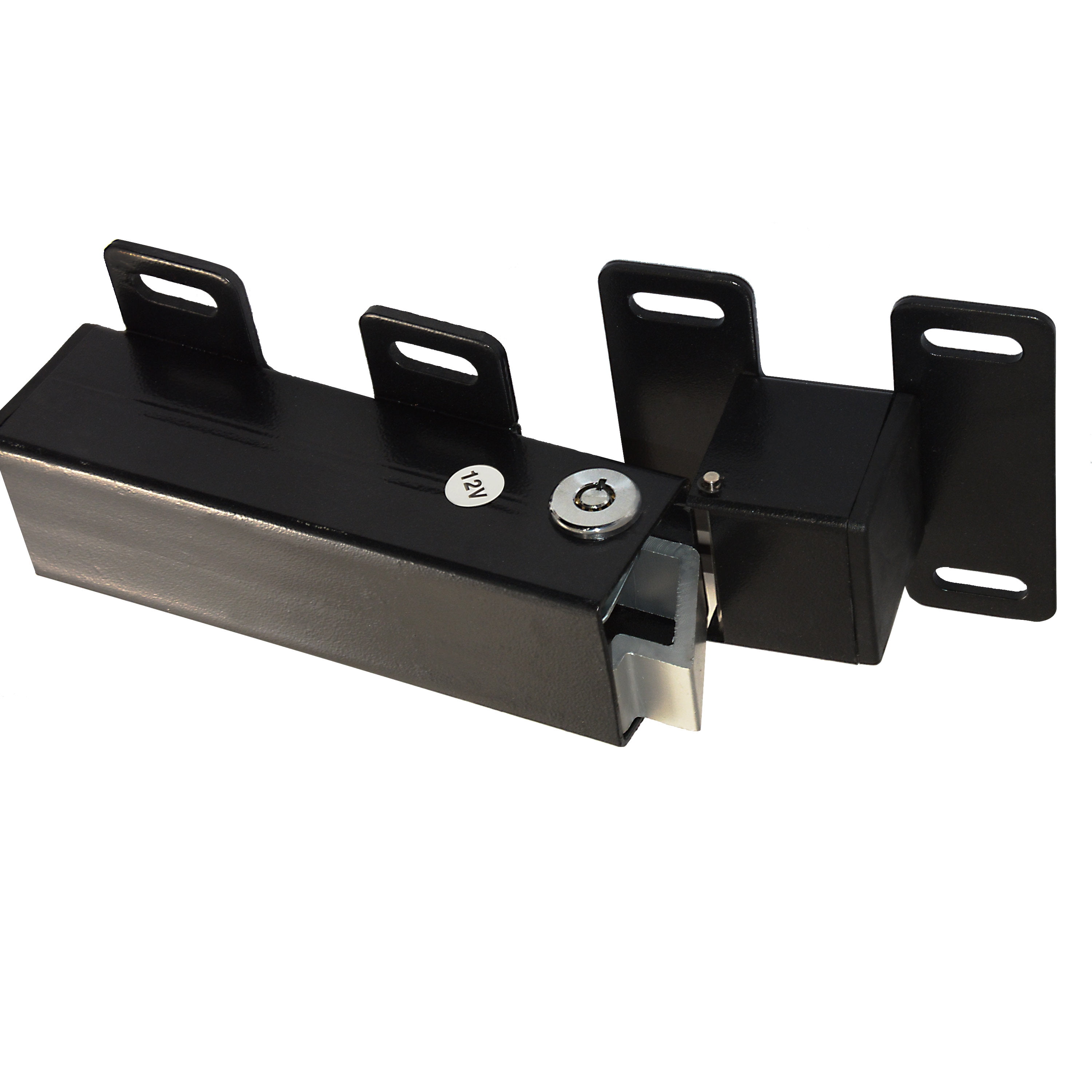 For added security. Unlocks and locks automatically as gates open and close. Comes with a manual release key. Recommended for gates over 7 ft. long. Ideal for animal enclosures or high wind areas. Compatible with any 12V gate opener system.