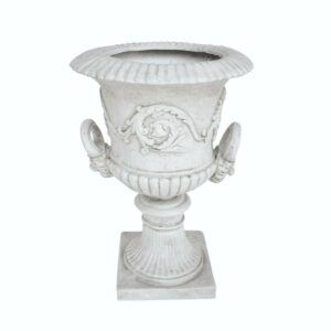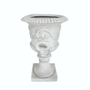 – ELEGANT STYLE : Antique lightweight concrete gives this planter a high-end, faux-stone appearance. This piece boasts a Roman design with botanical accents and a square base.