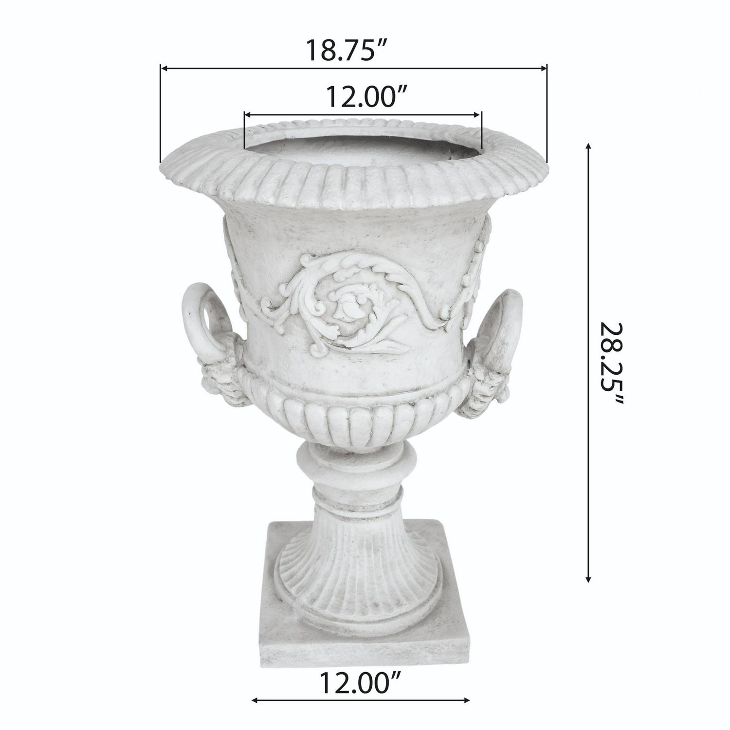 Alena Outdoor Light Weight Concrete Chalice Garden Urn Planter, Antique White