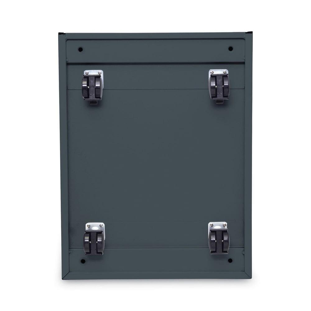 – Frequent use. Includes lock for security. Charcoal gray metal finish lets this cabinet blend in with any office surroundings. Counterweight keeps the pedestal upright for safety.