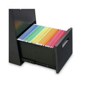 – Vertical filing. Accepts either letter or legal size hanging files, features high sided drawers for hanging file folders. Manufacturer’s five-year warranty. Steel ball-bearing slide suspension allows full extension on file drawers for easy access to all documents. Easy-access casters include two locking casters for better control when moving the unit.