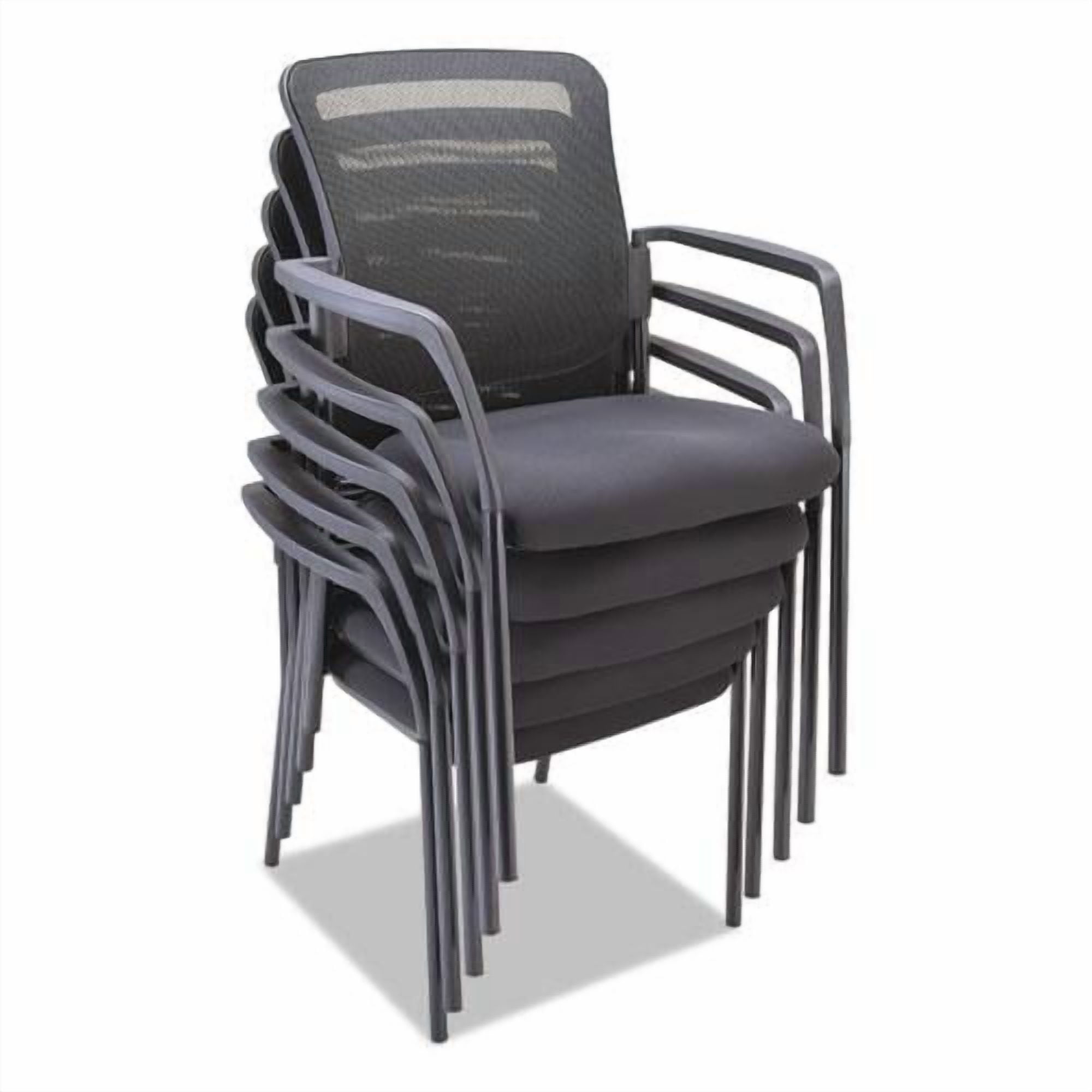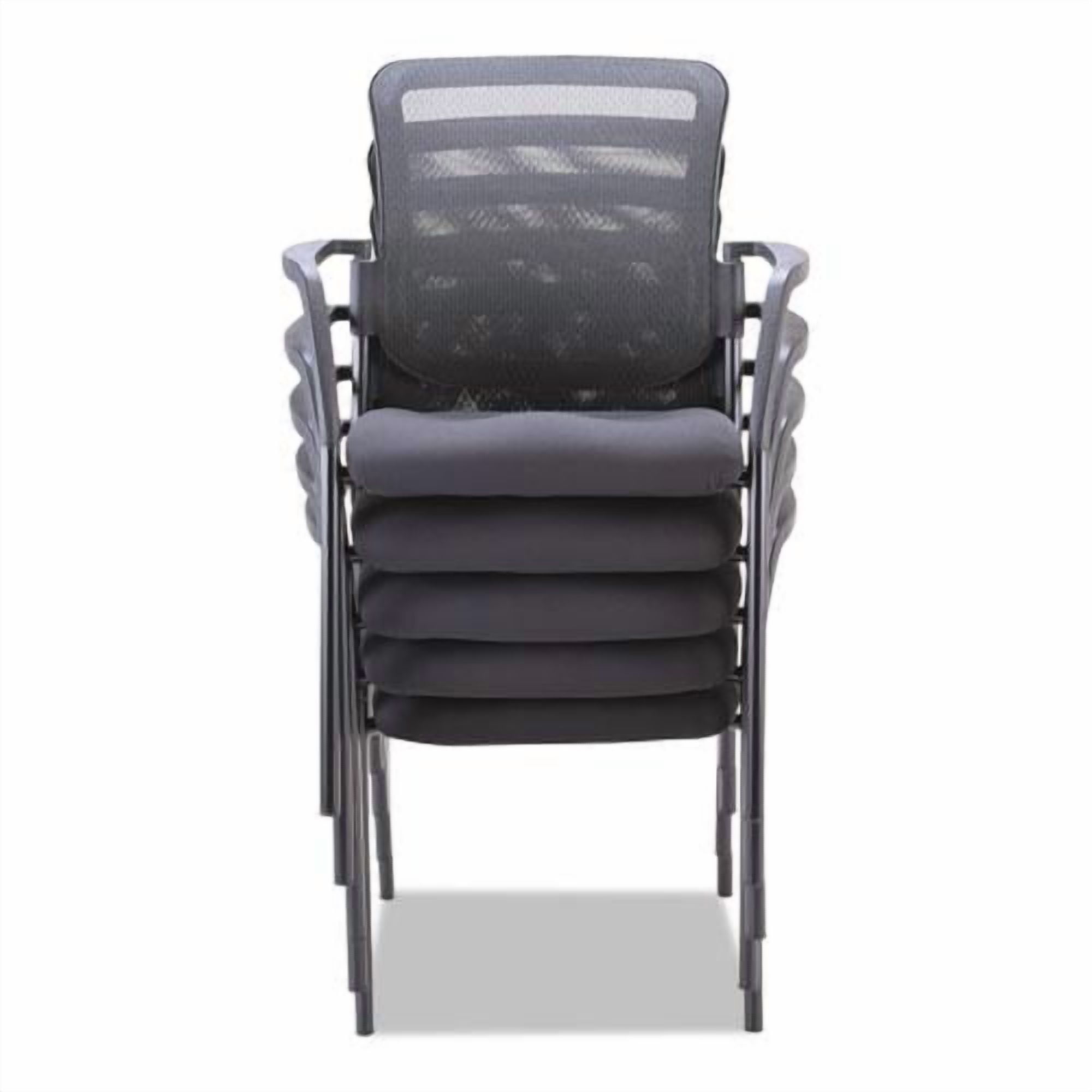 Cool breathable mesh back upholstery stacks up to five high. Includes both glides for fixed use and casters for mobility. Provides long-lasting support.