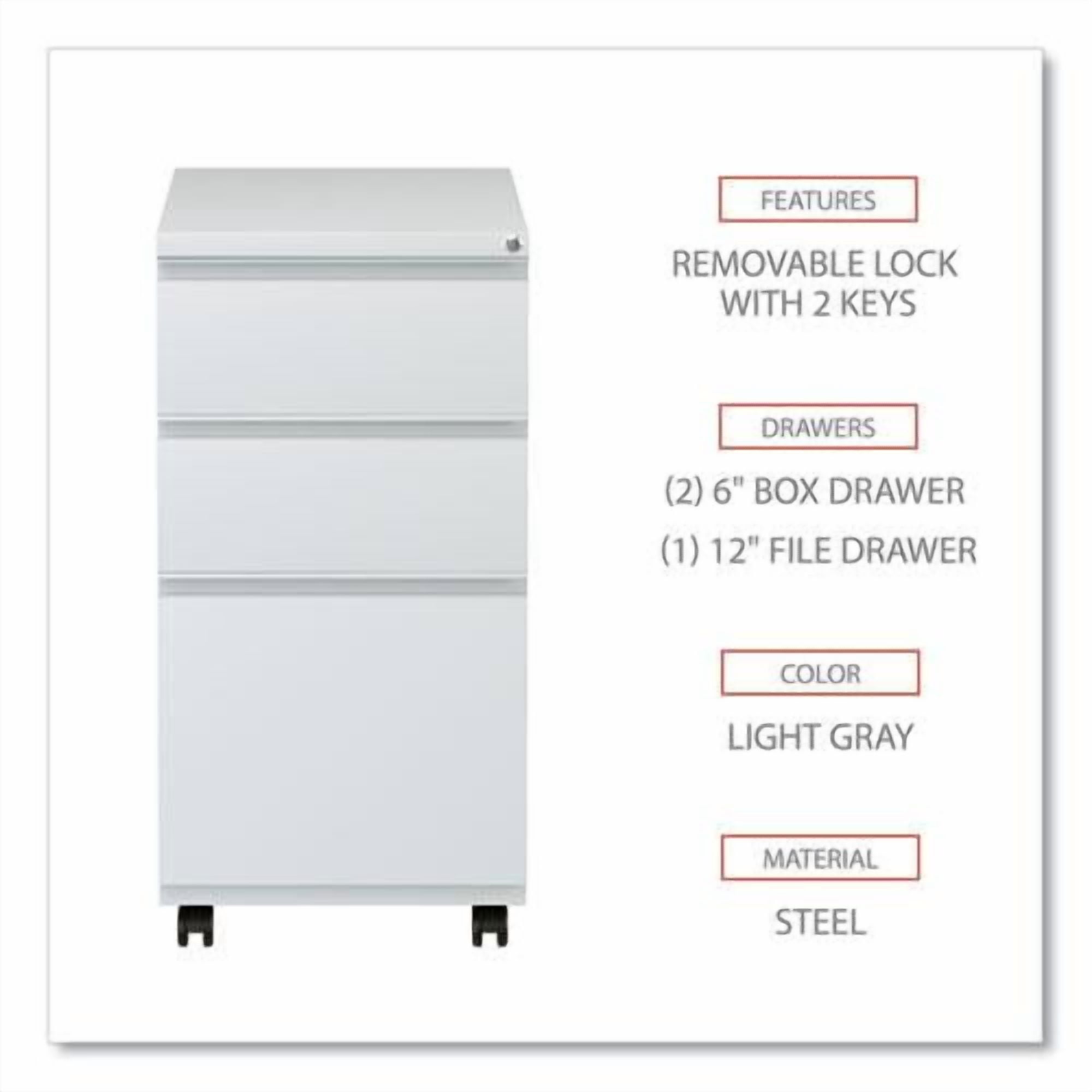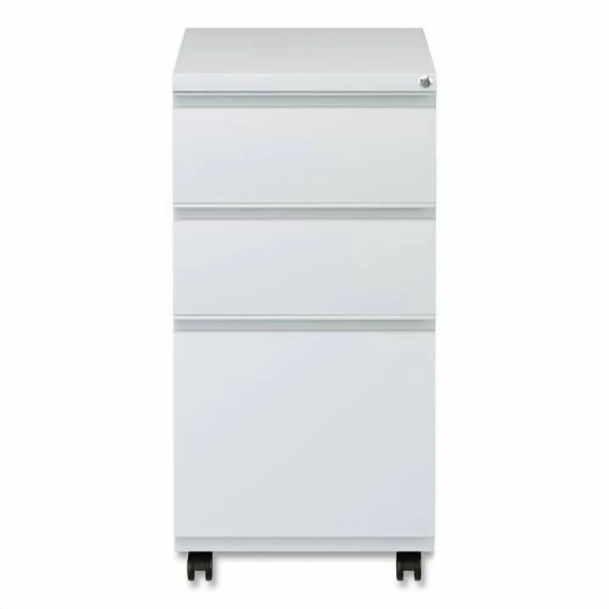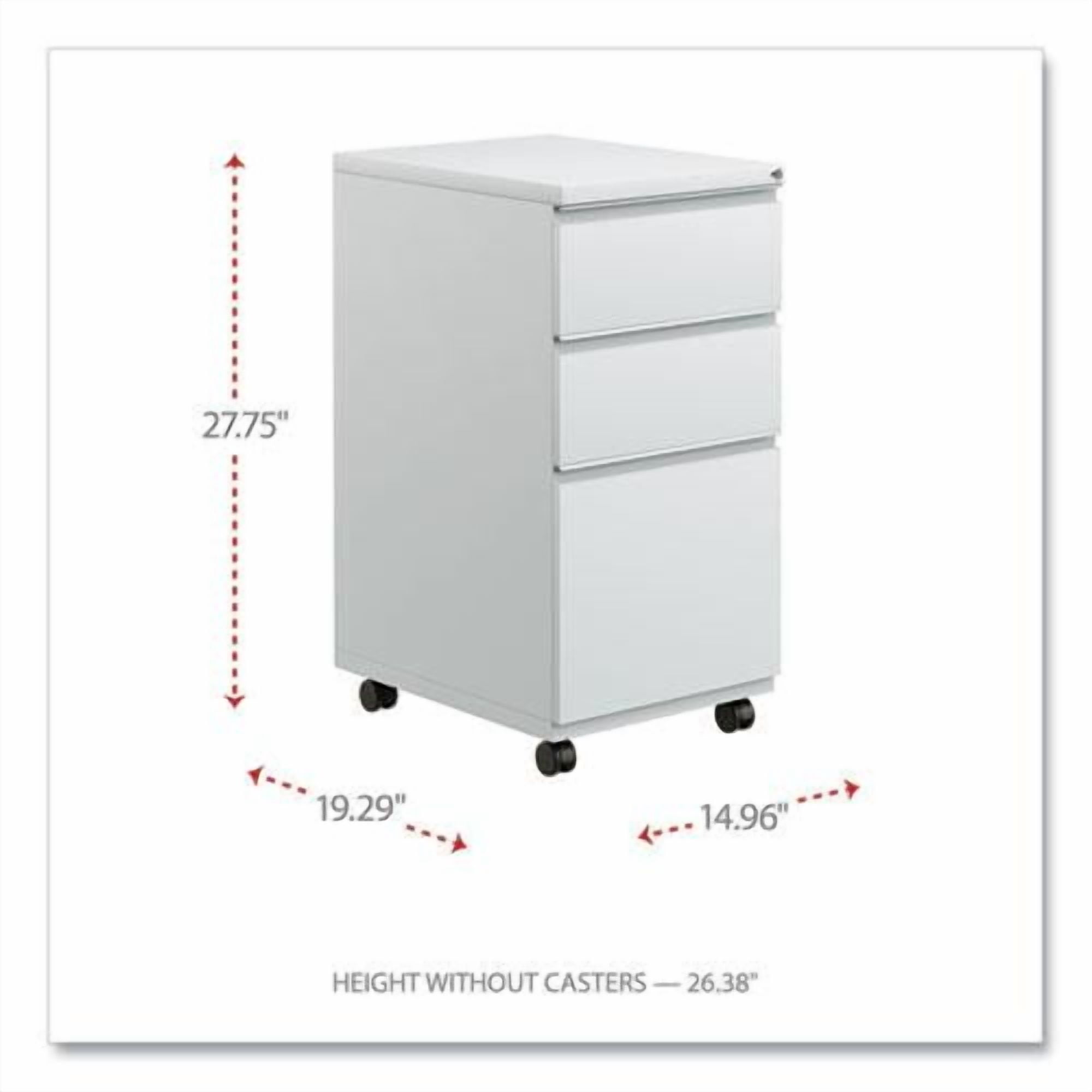 Get organized with a high-sided file cabinet with drawers that accommodate letter or legal-sized hanging files. Steel ball bearing telescoping slide suspension helps drawers glide smoothly and with ease. The counterweight prevents tipping. Equipped with 4 casters, 2 locking, 2 non-locking. Full-length pull permits easy opening. Single key core removable lock with 2 keys. Durable powder coated finish helps prevent scratches.