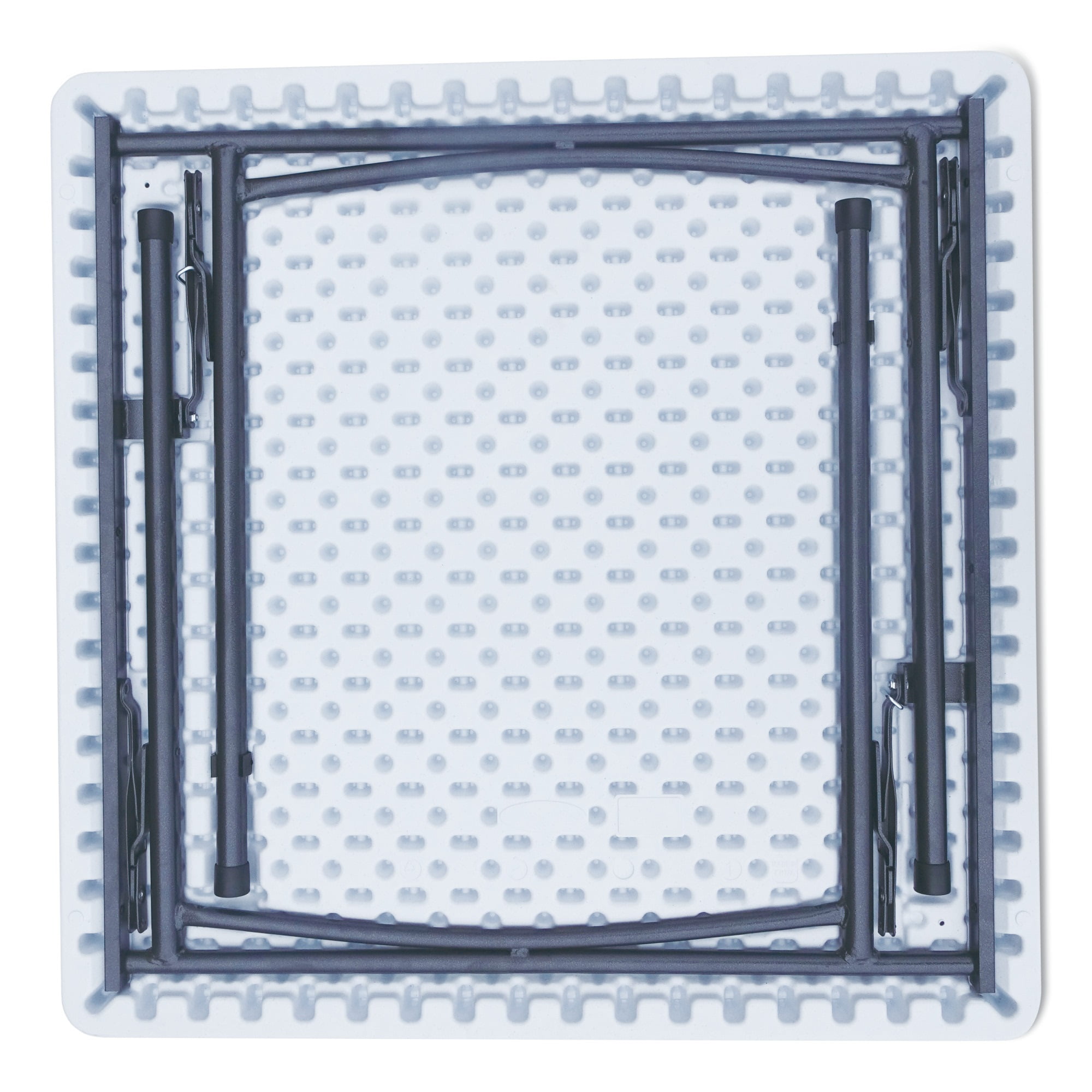 Versatile table is perfect for indoors or outdoors. Convenient square folding table sets up quickly when extra table is needed and space is limited. Blow-molded polyethylene top is water and stain resistant; won’t crack or stain. Strong, durable, powder-coated metal construction withstands dents and scratches. Slide lock feature to ensure table stability once opened as legs fold flush into table creating a flat surface for storage and stacking. Non-marring foot caps protect your floor from scratches. Supports up to 600 lbs when weight is evenly distributed. Model Number: ALEPT36SW