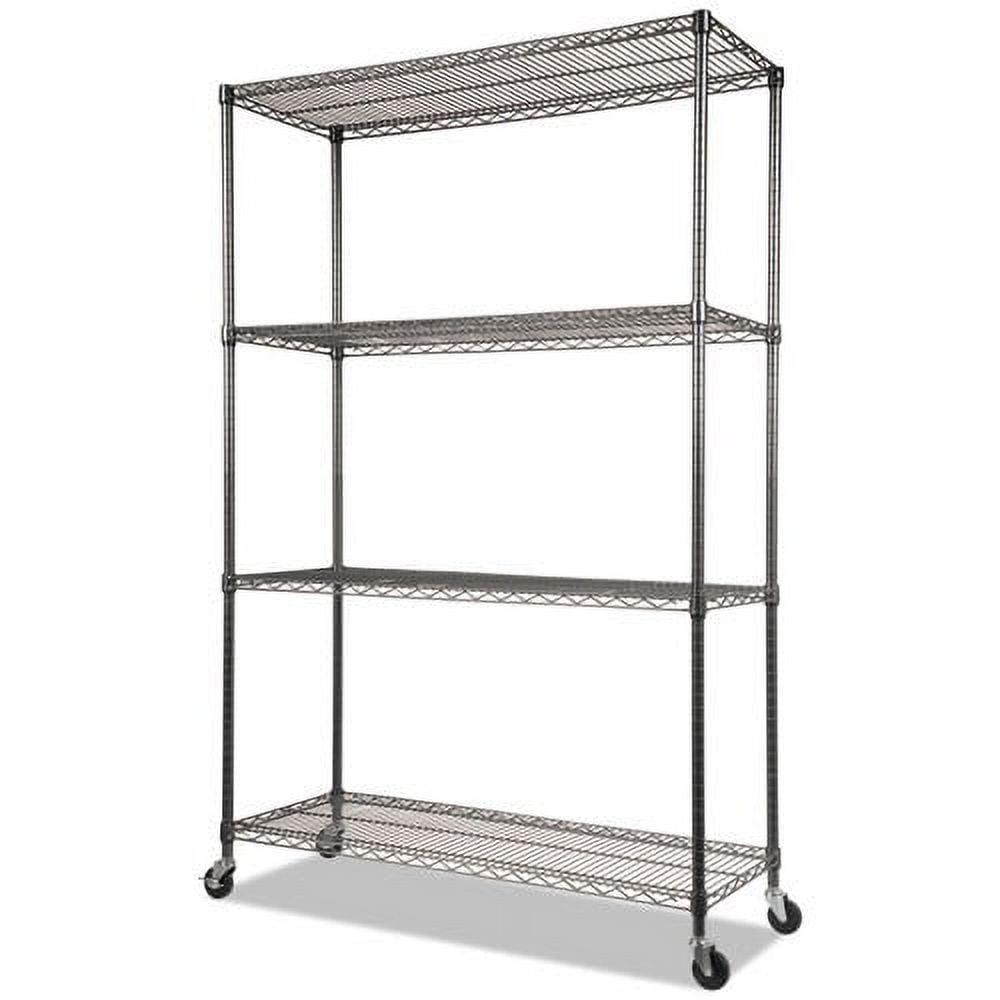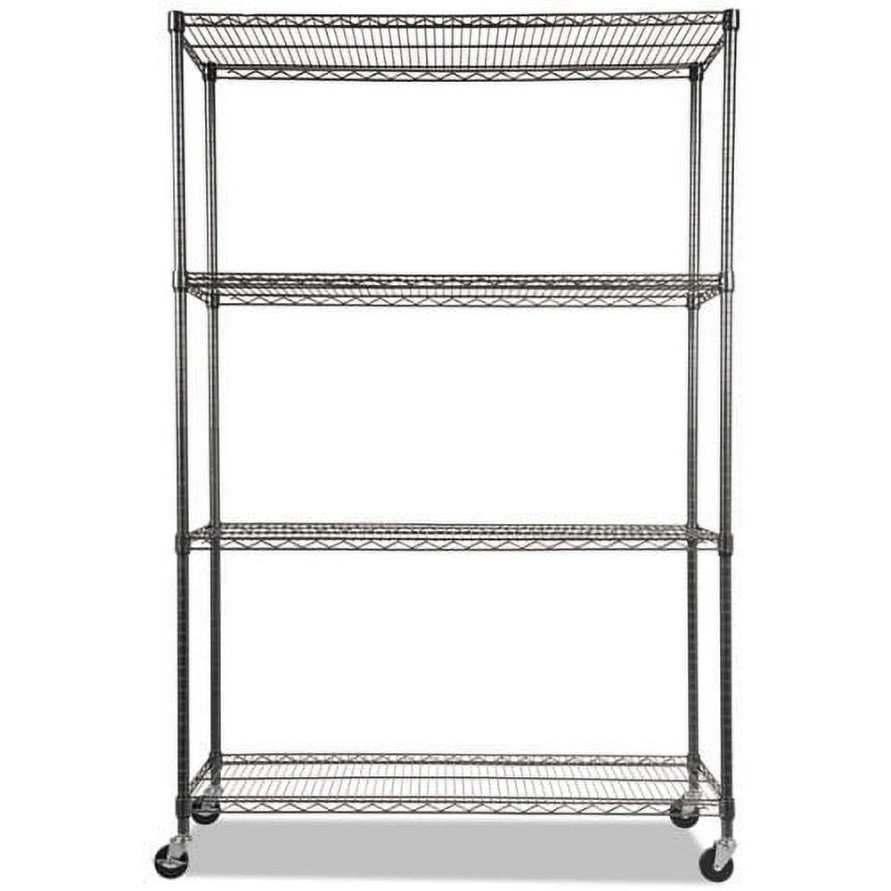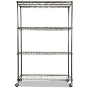 Alera Complete Wire Shelving Unit with Casters, Four-Shelf, 48 x 18 x 72 , Black Anthracite