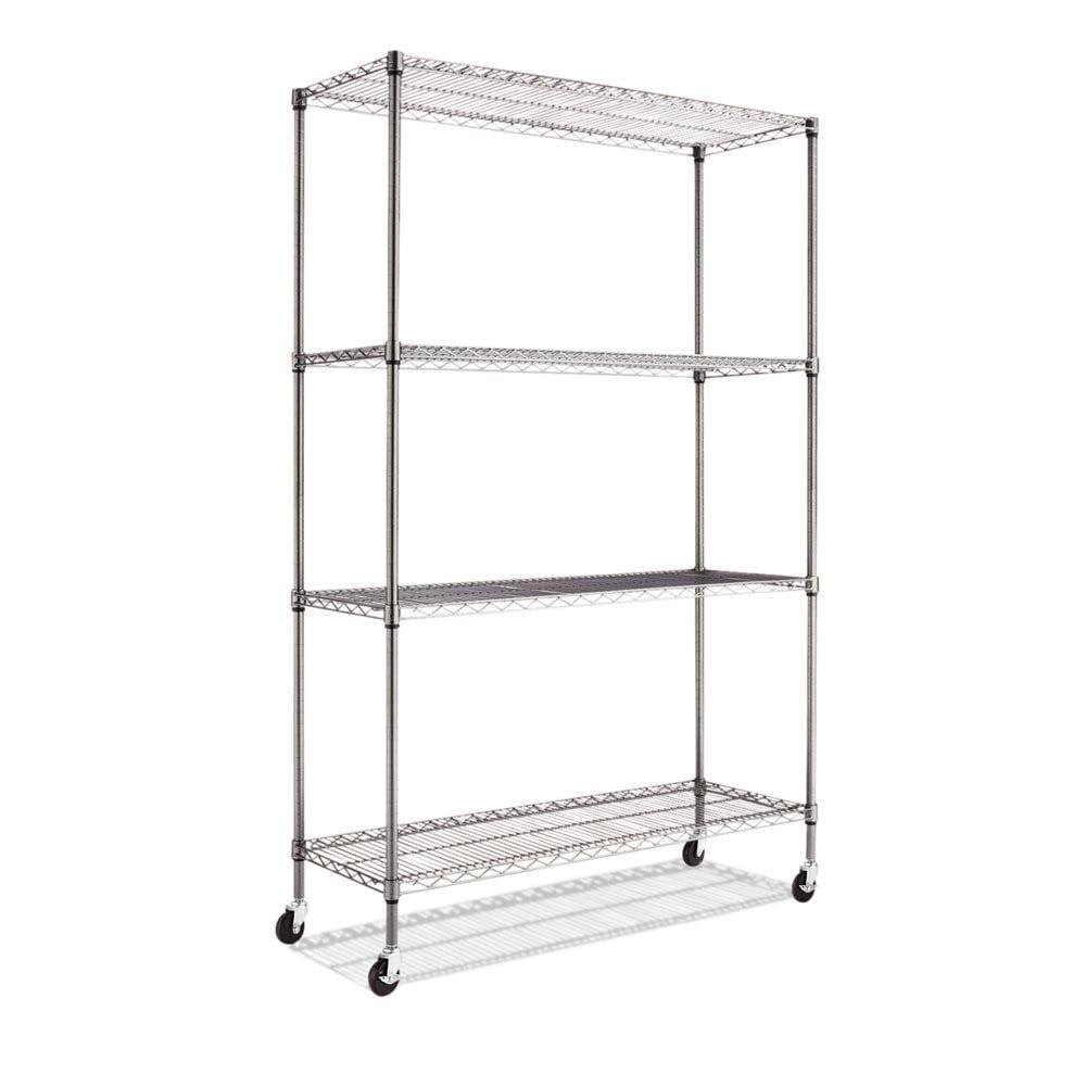 Get the extra storage you need with this versatile welded wire shelving unit. Each of the four shelves can support up to 600 evenly distributed pounds to meet medium-duty storage requirements, and the snap-together design is quick and easy to assemble. This Alera metal shelving unit has a corrosion-resistant finish to help it withstand wet environments, and the locking casters can be removed for extra sturdiness.