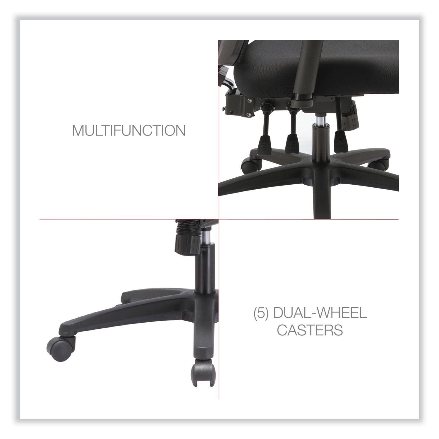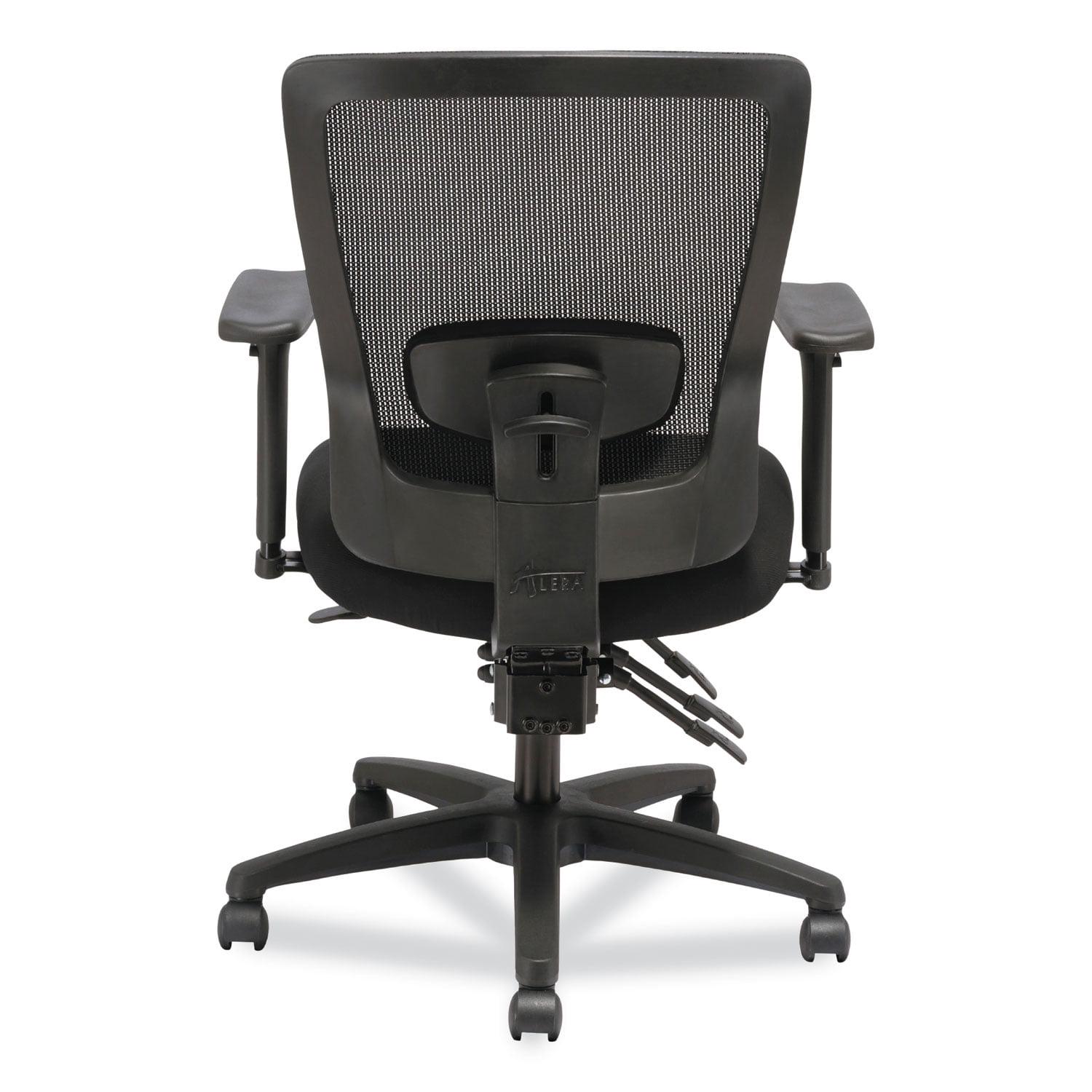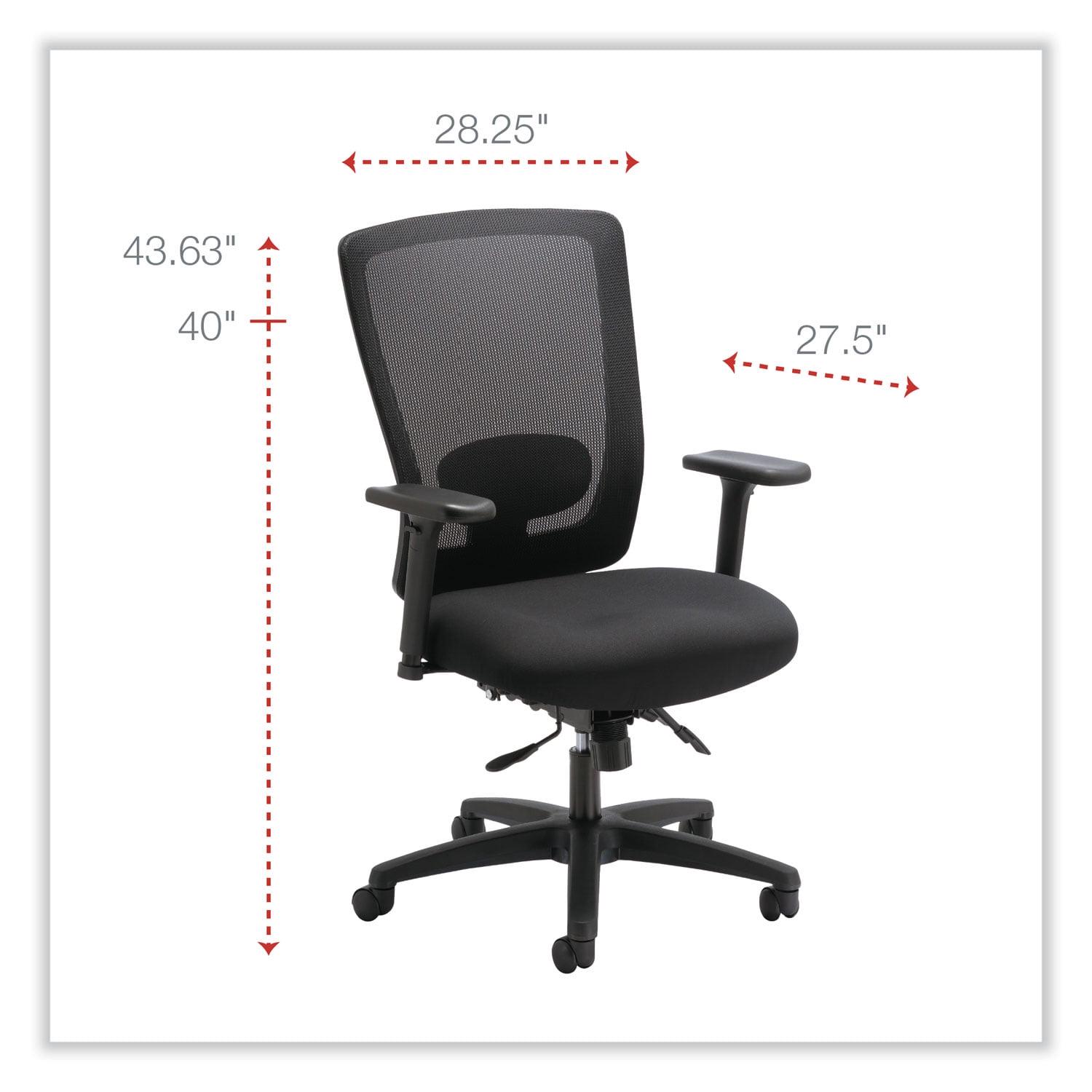 This Alera mid-back chair features a crisp visual design and a variety of ergonomic adjustments at an irresistible price. Mesh back offers breathable support and conforms to the natural curvature of the spine. Lumbar adjustment adapts to support the lower back and can be adjusted to satisfy a variety of different users. Adjustable-height and width arms move up and down, as well as, toward and away from the body to adapt to various body sizes. Asynchronous control offers a wide range of movement, assists in spinal alignment and distributes users weight evenly. 360-degree swivel provides easy of movement in any direction. Supports up to 250 lbs. Arm Adjustability: Height; Width; Arm Height From Seat: 8.63″ to 11.13″; Arm Type: T-Bar; Armrest Color: Black; Armrest Material: Aluminum; Plastic; Steel; Arms Included: Yes; Asynchronous Control: Yes; Back Color: Black; Back Height Adjustment: No; Back Height Maximum: 22.5″; Back Surface Material: Fabric; Back Surface Material Family: Fabric; Back Width Maximum: 17.5″; Base/Frame Color: Black; Base/Frame Material: Plastic; Caster/Glide Details: Five 1.97″ Dual-Wheel Casters; Color Family: Black; Distance Between Arms: 17.75″ to 20.25″; Dual-Action Tilt: No; Dual-Clutch Posture Control: No; Integral Lumbar Support: Yes; Knee Tilt: No; Multi-Task Control: No; Overall Depth Maximum: 27.5″; Overall Height Maximum: 43.63″; Overall Height Minimum: 40″; Overall Width Maximum: 28.25″; Pneumatic Seat Height Adjustment: Yes; Posture Lock: No; Recommended Application Area(s): General Office & Task; Seat Color: Black; Seat Depth Maximum: 20.5″; Seat Depth Minimum: 18.13″; Seat Glide Mechanism: Yes; Seat Height Maximum: 21.5″; Seat Height Minimum: 17″; Seat Surface Material: Fabric; Seat Surface Material Family: Fabric; Seat Width Maximum: 20″; Synchronized Knee Tilt: No; Tilt Tension/Tilt Lock: Yes; Variable Synchro-Tilt: No; Weight Capacity (text): Supports Up to 250 lb Compliance Standards: CAL TB117-2013 Compliant; Meets or Exceeds ANSI/BIFMA Standards. Warranty: Manufacturer’s limited five-year warranty. Post-Consumer Recycled Content Percent: 0%. Pre-Consumer Recycled Content Percent: 0%.