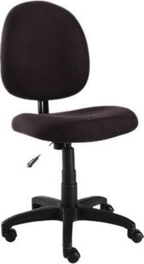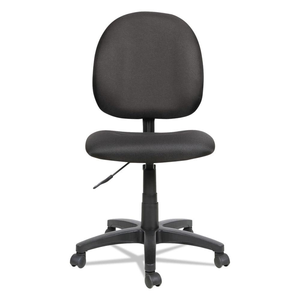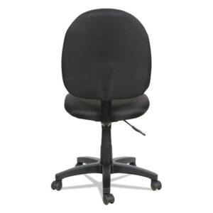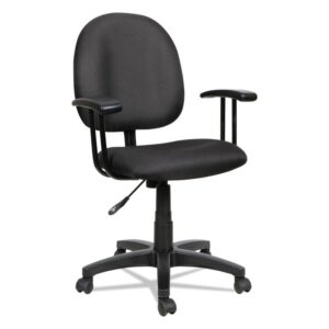 Contoured seat and back provide added comfort for long hours at your desk. Features pneumatic seat adjustment and rotates a full 360 in either direction for ease of motion. Black five-star base with casters. Durable 100% acrylic upholstery. Optional Arms sold and shipped separately. Recommended Applications: General Office & Task; Seat/Back Color: Black; Arms Included: No; Pneumatic Seat Height Adjustment: Yes.