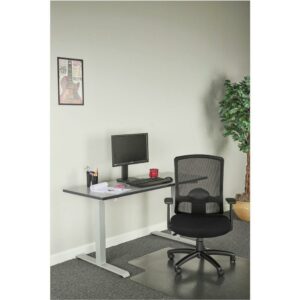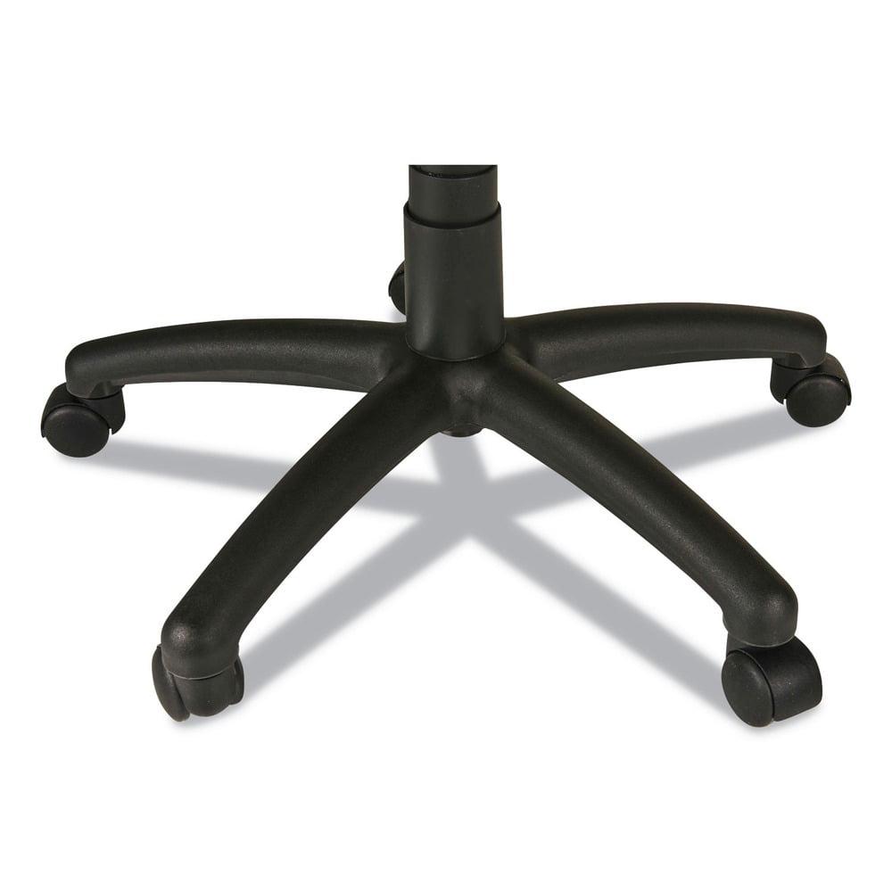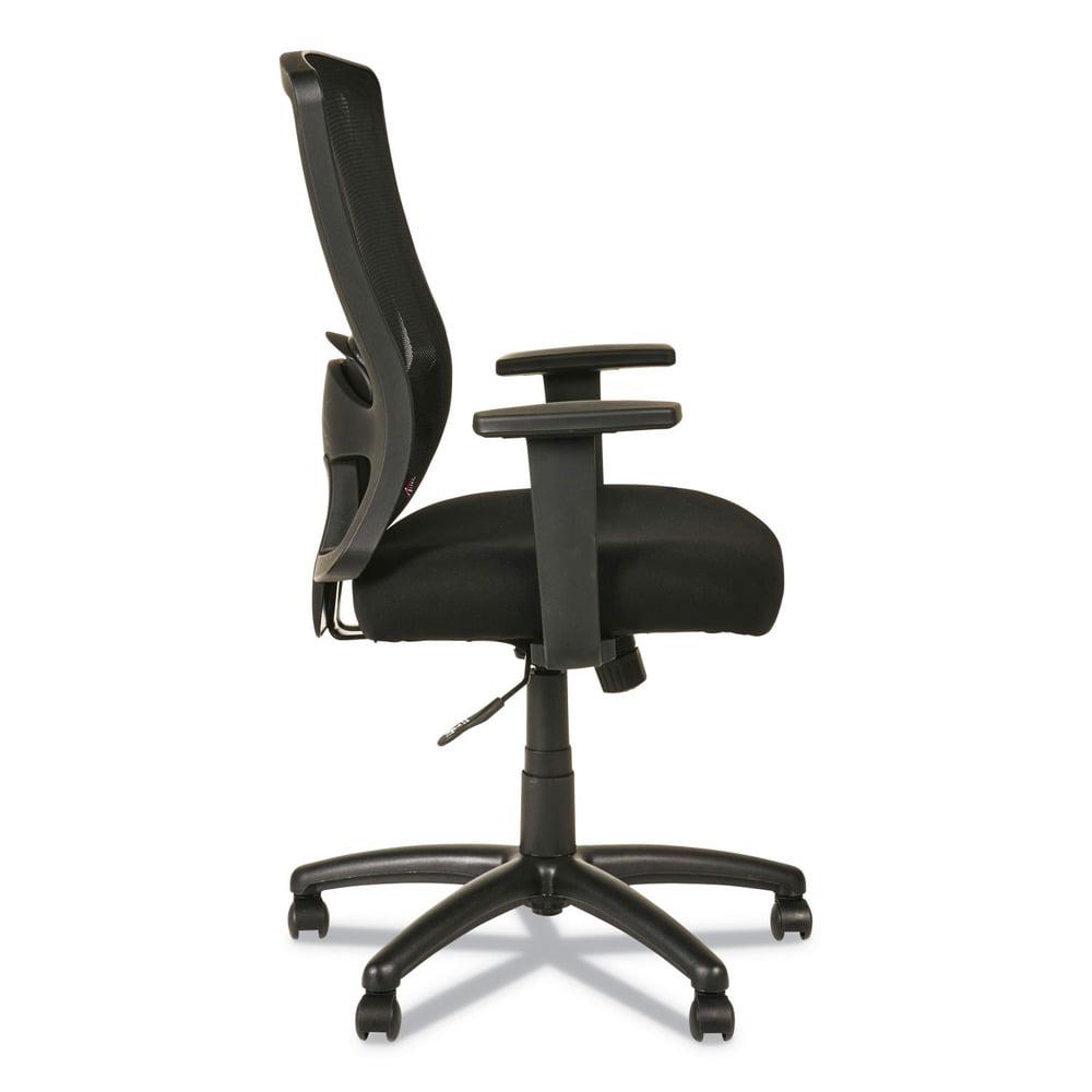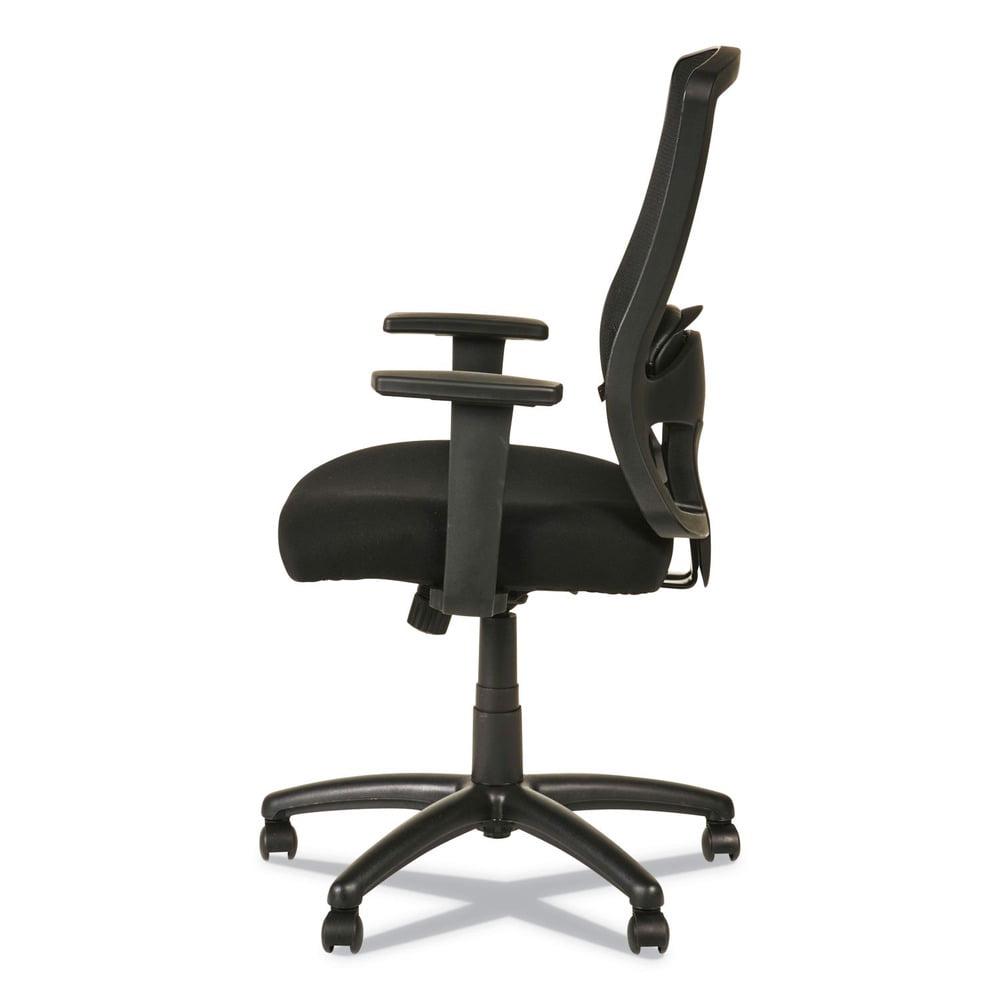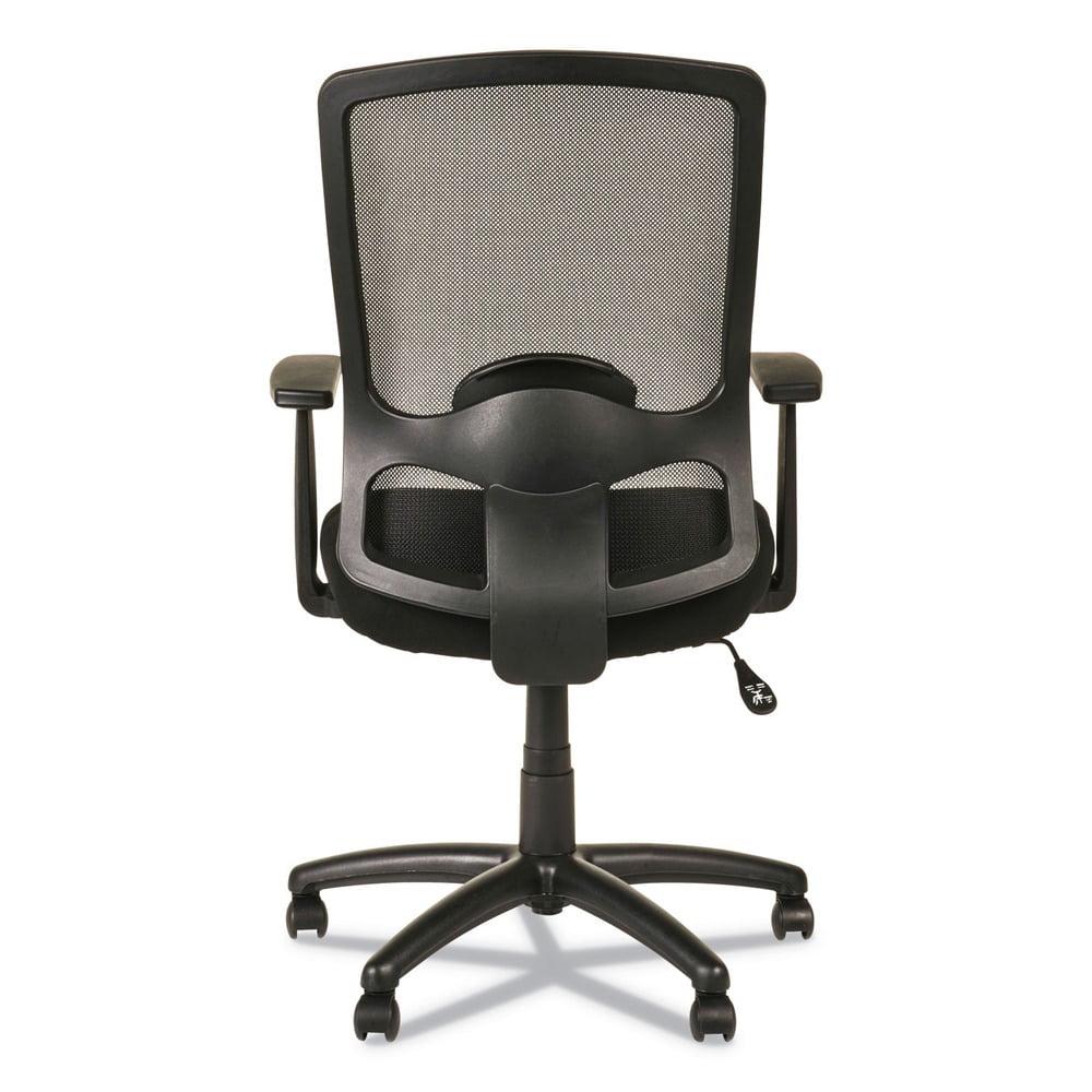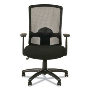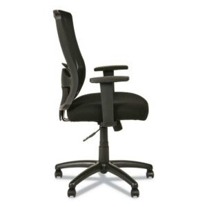 A modern Alera classic is the smart choice for your office. Breathable mesh back with cushioned mesh fabric seat. Adjustable lumbar support. Waterfall seat edge reduces pressure points at the back of the knee. Arm Height From Seat: 7.5″; Arm Type: Padded T-Bar; Armrest Color: Black; Armrest Material: Polypropylene; Polyurethane; Arms Included: Yes; Asynchronous Control: No; Back Color: Black; Back Height Adjustment: No; Back Height Maximum: 24.21″; Back Surface Material: Mesh; Back Surface Material Family: Mesh; Back Width Maximum: 18.5″; Base/Frame Color: Black; Base/Frame Material(s): Nylon; Caster/Glide Details: Five 2″ Hooded Dual-Wheel Casters; Caster/Glide Surface Texture: Hard; Color Family: Black; Distance Between Arms: 20.47″; Dual-Action Tilt: No; Dual-Clutch Posture Control: No; Integral Lumbar Support: No; Knee Tilt: No; Multi-Task Control: No; Overall Depth Maximum: 26.96″; Overall Height Maximum: 44.88″; Overall Height Minimum: 40.94″; Overall Width Maximum: 27.16″; Pneumatic Seat Height Adjustment: Yes; Posture Lock: No; Recommended Application Area(s): Conference & Meeting; Executive & Management; General Office & Task; Seat Color: Black; Seat Depth Maximum: 18.89″; Seat Glide Mechanism: No; Seat Height Maximum: 22.04″; Seat Height Minimum: 18.11″; Seat Surface Material: Fabric; Seat Surface Material Family: Fabric; Seat Width Maximum: 21.25″; Synchronized Knee Tilt: No; Tilt Tension/Tilt Lock: Yes; Variable Synchro-Tilt: No; Weight Capacity: Supports Up to 275 lb Compliance Standards: CAL TB117-2013 Compliant; Meets or Exceeds ANSI/BIFMA Standards. Warranty: Manufacturer’s limited five-year warranty. Post-Consumer Recycled Content Percent: 5%. Pre-Consumer Recycled Content Percent: 25%. Recycled Comments: Contains 5% post-consumer recycled content, 30% total recycled content.
