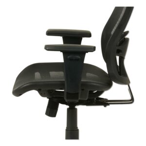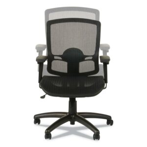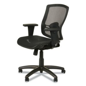 Alera’s mesh suspension seat and back provides firmness, breathability, and comfort. Adjustable lumbar support. Back reclines at 2-to-1 angle to the seat allowing user to recline while keeping seat relatively even with the floor. Adjustable arms offer optimal positioning. Five-star base with casters. Arm Adjustability: Height; Arm Height From Seat: 6.25″ to 9″; Arm Type: Loop; Armrest Color: Black; Armrest Material: Polypropylene; Arms Included: Yes; Asynchronous Control: No; Back Color: Black; Back Height Adjustment: No; Back Height Maximum: 20.27″; Back Surface Material: Mesh; Back Surface Material Family: Mesh; Back Width Maximum: 17.32″; Base/Frame Color: Black; Base/Frame Material(s): Nylon; Caster/Glide Details: Five 2″ Hooded Dual-Wheel Casters; Caster/Glide Surface Texture: Hard; Color Family: Black; Distance Between Arms: 15.55″; Dual-Action Tilt: Yes; Dual-Clutch Posture Control: No; Integral Lumbar Support: Yes; Knee Tilt: No; Multi-Task Control: No; Overall Depth Maximum: 27.16″; Overall Height Maximum: 39.76″; Overall Height Minimum: 35.82″; Overall Width Maximum: 26.37″; Pneumatic Seat Height Adjustment: Yes; Posture Lock: No; Recommended Application Area(s): General Office & Task; Seat Color: Black; Seat Depth Maximum: 18.7″; Seat Glide Mechanism: No; Seat Height Maximum: 19.68″; Seat Height Minimum: 15.74″; Seat Surface Material: Mesh; Seat Surface Material Family: Mesh; Seat Width Maximum: 20.07″; Synchronized Knee Tilt: No; Tilt Tension/Tilt Lock: Yes; Variable Synchro-Tilt: No; Weight Capacity: Supports Up to 275 lb Compliance Standards: CAL TB117-2013 Compliant; Meets or Exceeds ANSI/BIFMA Standards. Warranty: Manufacturer’s limited five-year warranty. Post-Consumer Recycled Content Percent: 0%. Pre-Consumer Recycled Content Percent: 0%.