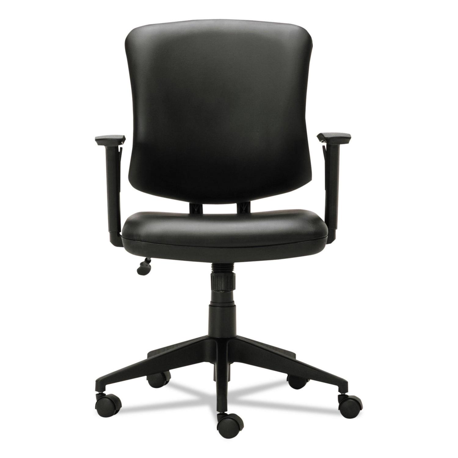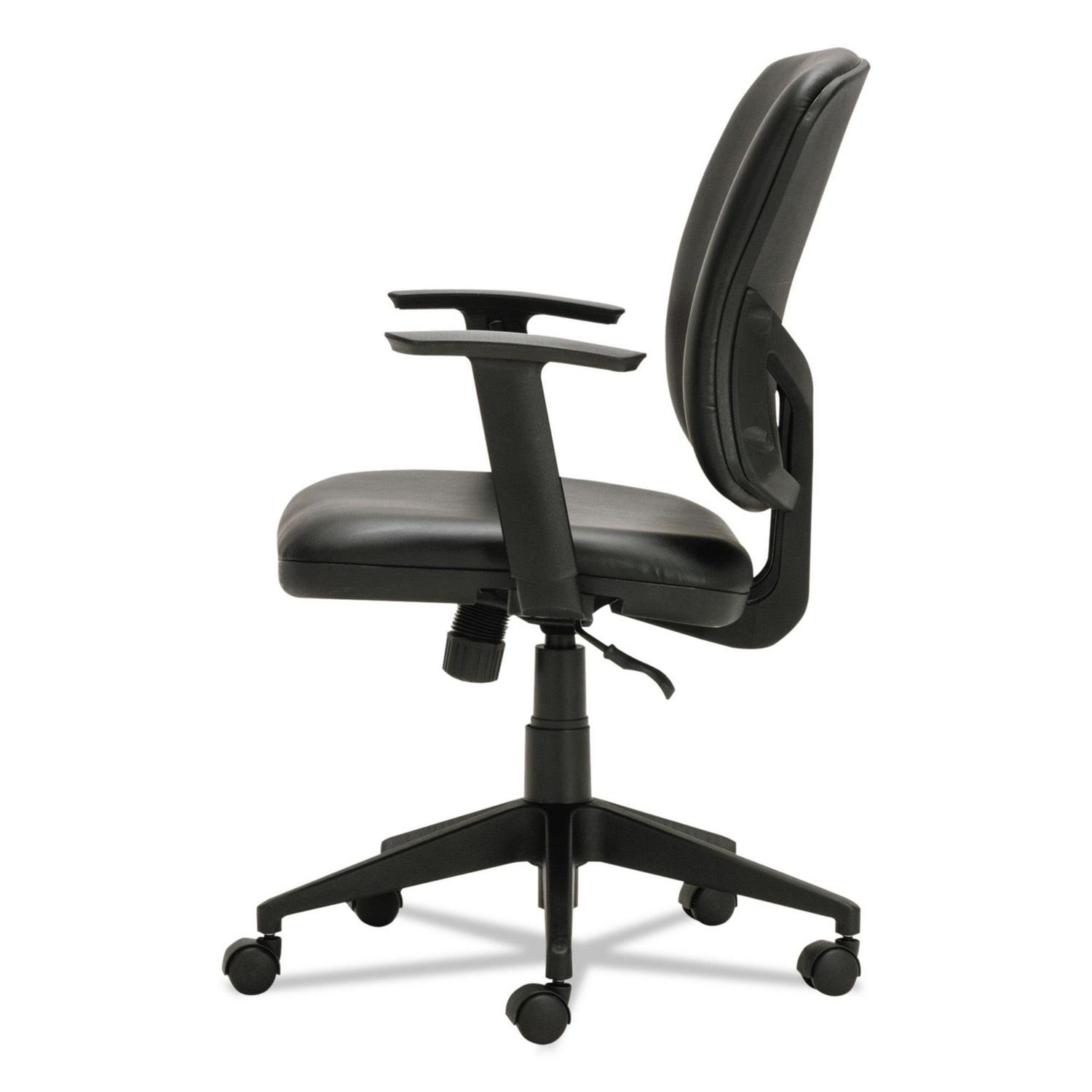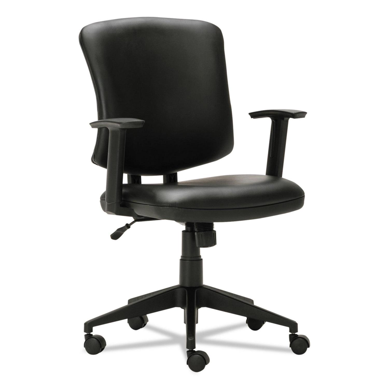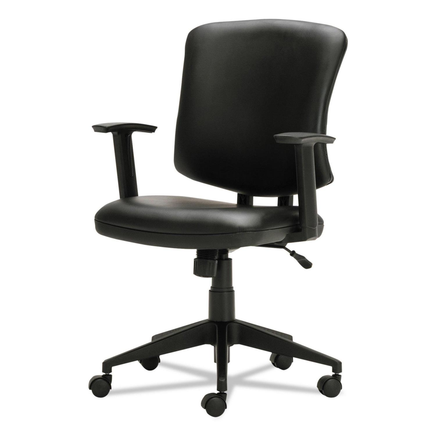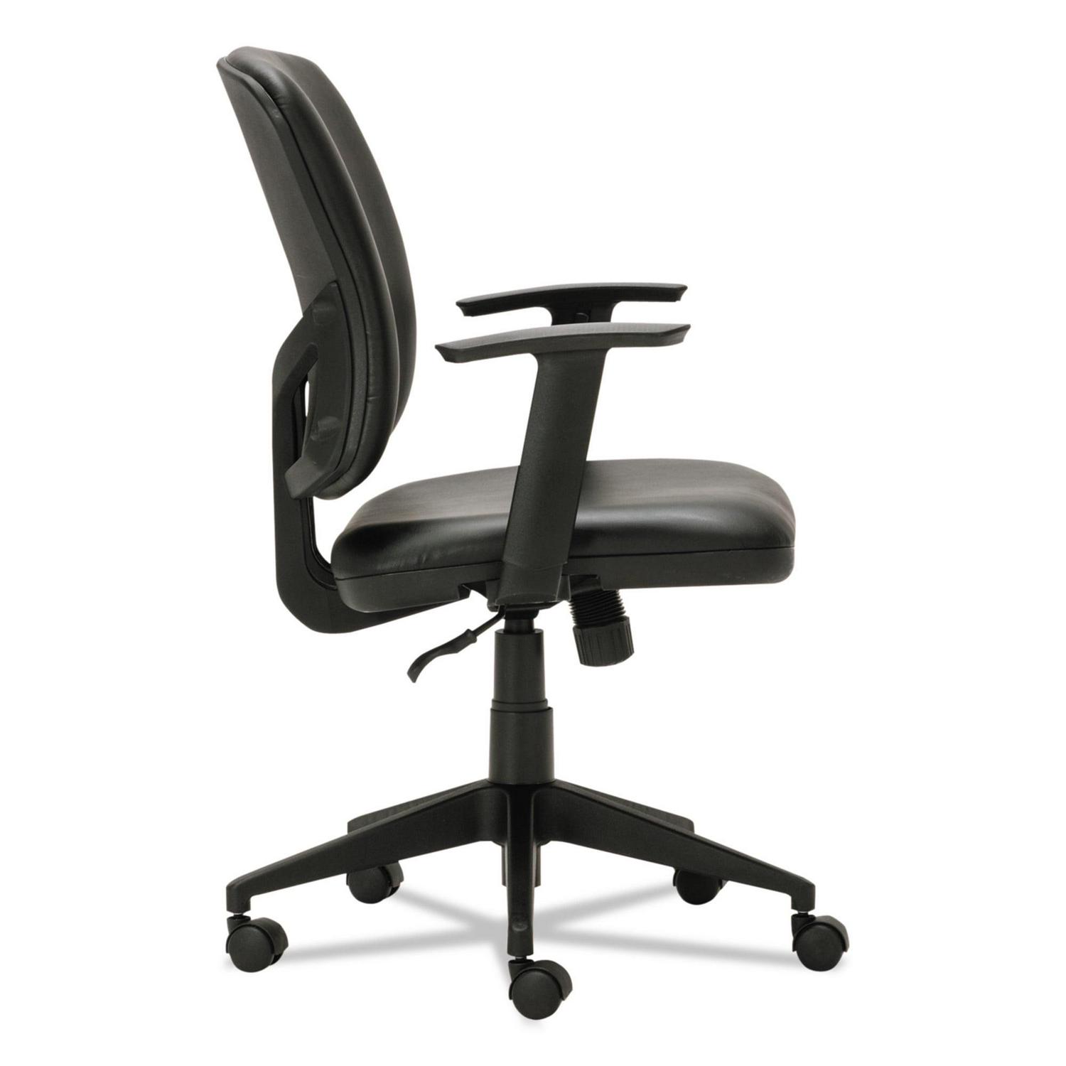 The one chair suitable for your everyday work tasks. The Alera Everyday Task chair’s contoured padded seat and back provides superior comfort and ergonomics. Waterfall seat edge relieves pressure on the back of legs and knees. Adjustable height padded arms. Swivel, tilt and tilt-tension/lock controls. Arm Adjustability: Height; Arm Height From Seat: 7.38″ to 10.88″; Arm Type: T-Bar; Armrest Color: Black; Armrest Material: Polypropylene; Polyurethane; Arms Included: Yes; Asynchronous Control: No; Back Color: Black; Back Height Adjustment: No; Back Height Maximum: 20.7″; Back Surface Material: Bonded Leather; Back Surface Material Family: Bonded Leather; Back Width Maximum: 17.1″; Base/Frame Color: Black; Base/Frame Material(s): Nylon; Caster/Glide Details: Five 2″ Hooded Dual-Wheel Casters; Caster/Glide Surface Texture: Hard; Color Family: Black; Distance Between Arms: 18.2″; Dual-Action Tilt: No; Dual-Clutch Posture Control: No; Integral Lumbar Support: No; Knee Tilt: No; Multi-Task Control: No; Overall Depth Maximum: 26″; Overall Height Maximum: 39.4″; Overall Height Minimum: 35.4″; Overall Width Maximum: 25.6″; Pneumatic Seat Height Adjustment: Yes; Posture Lock: No; Recommended Application Area(s): Conference & Meeting; General Office & Task; Seat Color: Black; Seat Depth Maximum: 16.3″; Seat Glide Mechanism: No; Seat Height Maximum: 21.5″; Seat Height Minimum: 17.6″; Seat Surface Material: Bonded Leather; Seat Surface Material Family: Bonded Leather; Seat Width Maximum: 18.5″; Synchronized Knee Tilt: No; Tilt Tension/Tilt Lock: Yes; Variable Synchro-Tilt: No; Weight Capacity: Supports Up to 275 lb Compliance Standards: CAL TB117-2013 Compliant; Meets or Exceeds ANSI/BIFMA Standards. Warranty: Manufacturer’s limited five-year warranty. Post-Consumer Recycled Content Percent: 5%. Pre-Consumer Recycled Content Percent: 15%. Recycled Comments: Contains 5% post-consumer recycled content, 20% total recycled content.