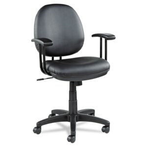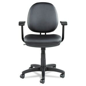 Ideal for tight workspaces and all-day seating comfort. Molded plastic shell resists impact. Waterfall seat edge helps relieve pressure points on the underside of legs. Five-star base with casters for easy mobility. Optional Arms sold separately. Arms Included: No; Asynchronous Control: No; Back Color: Black; Back Height Adjustment: Yes; Back Height Maximum: 18.89″; Back Surface Material: Bonded Leather; Back Surface Material Family: Bonded Leather; Back Width Maximum: 16.53″; Base/Frame Color: Black; Base/Frame Material(s): Nylon; Caster/Glide Details: Five 2″ Hooded Casters; Caster/Glide Surface Texture: Hard; Color Family: Black; Dual-Action Tilt: No; Dual-Clutch Posture Control: No; For Use With: Alera Optional Height-Adjustable, Fixed-Height T-Arms; Integral Lumbar Support: No; Knee Tilt: No; Multi-Task Control: No; Overall Depth Maximum: 25.59″; Overall Height Maximum: 39.37″; Overall Height Minimum: 34.25″; Overall Width Maximum: 23.62″; Pneumatic Seat Height Adjustment: Yes; Posture Lock: No; Recommended Application Area(s): General Office & Task; Seat Color: Black; Seat Depth Maximum: 16.92″; Seat Glide Mechanism: No; Seat Height Maximum: 23.22″; Seat Height Minimum: 18.11″; Seat Surface Material: Bonded Leather; Seat Surface Material Family: Bonded Leather; Seat Width Maximum: 19.68″; Synchronized Knee Tilt: No; Tilt Tension/Tilt Lock: Yes; Variable Synchro-Tilt: No; Weight Capacity: Supports Up to 275 lb Compliance Standards: CAL TB117-2013 Compliant; Meets or Exceeds ANSI/BIFMA Standards. Warranty: Manufacturer’s limited five-year warranty. Post-Consumer Recycled Content Percent: 5%. Pre-Consumer Recycled Content Percent: 25%. Recycled Comments: Contains 5% post-consumer recycled content, 30% total recycled content.