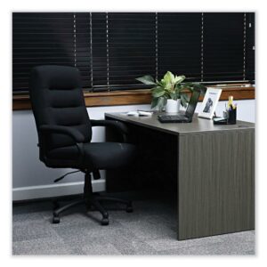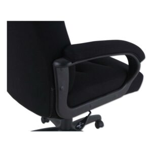 So comfortable, you might forget you’re at work. A supremely cushioned, fully adjustable, Alera high back chair that s designed for long-lasting, mattress-like comfort during extended periods of sitting. Thoughtfully designed with a molded foam back and cushioned seat for added resiliency and maximum comfort. The generously plush padded armrests provide further support and cushioning. Includes a swivel/tilt mechanism for ease of adjustment. Arm Height From Seat: 6.49″; Arm Type: Padded Loop; Armrest Color: Black; Armrest Material: Fabric; Polypropylene; Arms Included: Yes; Asynchronous Control: No; Back Color: Black; Back Height Adjustment: No; Back Height Maximum: 27.95″; Back Surface Material: Fabric; Back Surface Material Family: Fabric; Back Width Maximum: 21.25”; Base/Frame Color: Black; Base/Frame Material: Nylon; Caster/Glide Details: Five Hooded Casters; Caster/Glide Surface Texture: Hard; Color Family: Black; Distance Between Arms: 21.25″; Dual-Action Tilt: No; Dual-Clutch Posture Control: No; Integral Lumbar Support: No; Knee Tilt: No; Multi-Task Control: No; Overall Depth Maximum: 29.13”; Overall Height Maximum: 47.24″; Overall Height Minimum: 43.30″; Overall Width Maximum: 29.13”; Pneumatic Seat Height Adjustment: Yes; Posture Lock: No; Recommended Application Area(s): Executive & Management; Seat Color: Black; Seat Depth Maximum: 19.88”; Seat Glide Mechanism: No; Seat Height Maximum: 22.7”; Seat Height Minimum: 19.21”; Seat Surface Material: Fabric; Seat Surface Material Family: Fabric; Seat Width Maximum: 22.44″; Synchronized Knee Tilt: No; Tilt Tension/Tilt Lock: Yes; Variable Synchro-Tilt: No; Weight Capacity (text): Supports Up to 300 lb Compliance Standards: CAL TB117-2013 Compliant; Meets or Exceeds ANSI/BIFMA Standards. Warranty: Manufacturer’s limited five-year warranty. Post-Consumer Recycled Content Percent: 0%. Pre-Consumer Recycled Content Percent: 0%.