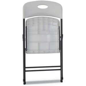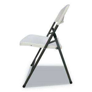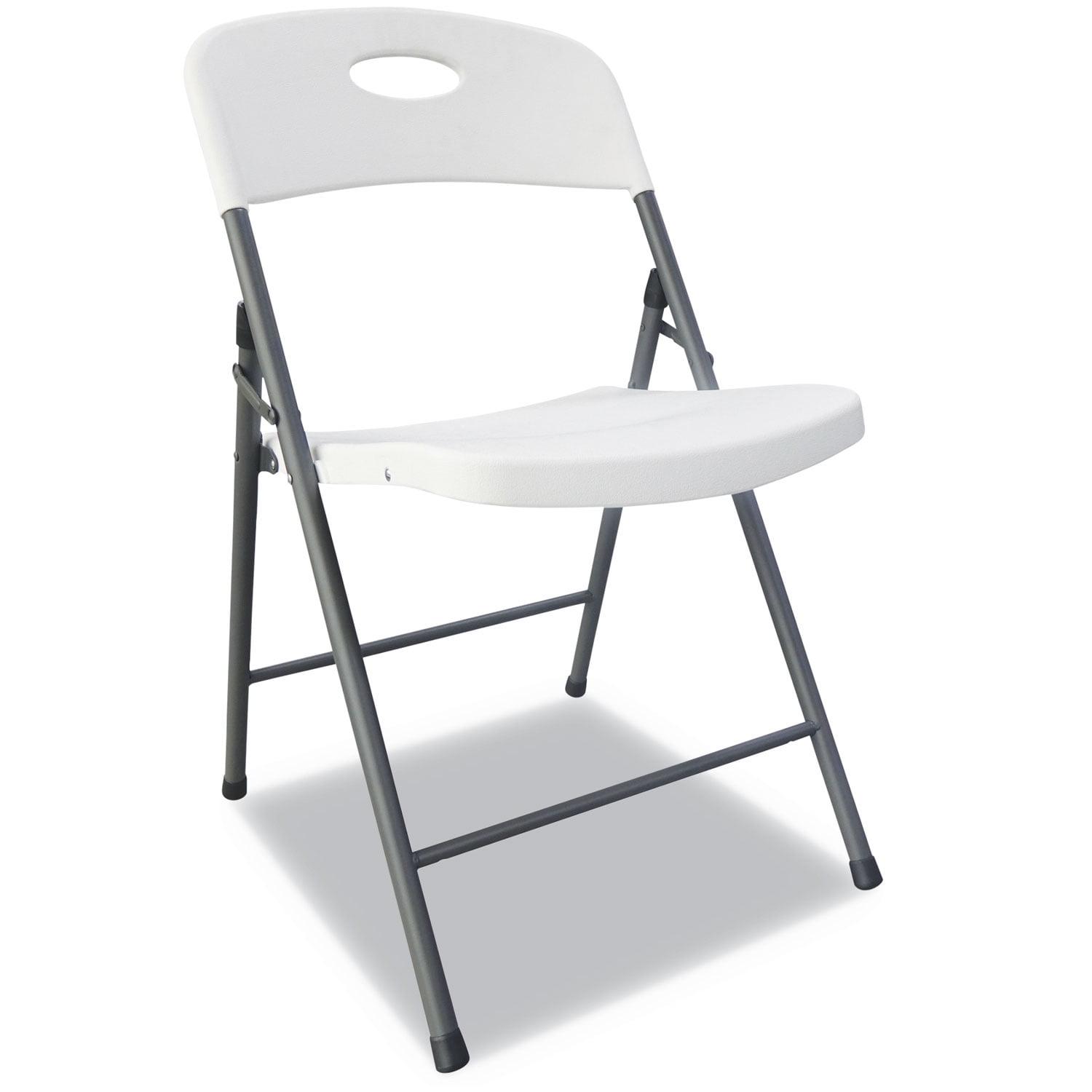 A classic Alera chair for all occasions, indoors or out. Contoured resin seat and back for maximum comfort. Powder coated steel gray frame resists corrosion and provides exceptional strength. U-brace design ensure stability and prevents racking. the molded resin folding chair folds flat for compact storage. Non-marring foot caps protect surfaces. Recommended Application Area(s): Breakroom and Foodservice; Conference and Meeting; Guest/Reception and Lounge; Seat Color: White; Back Color: White; Color Family: White.