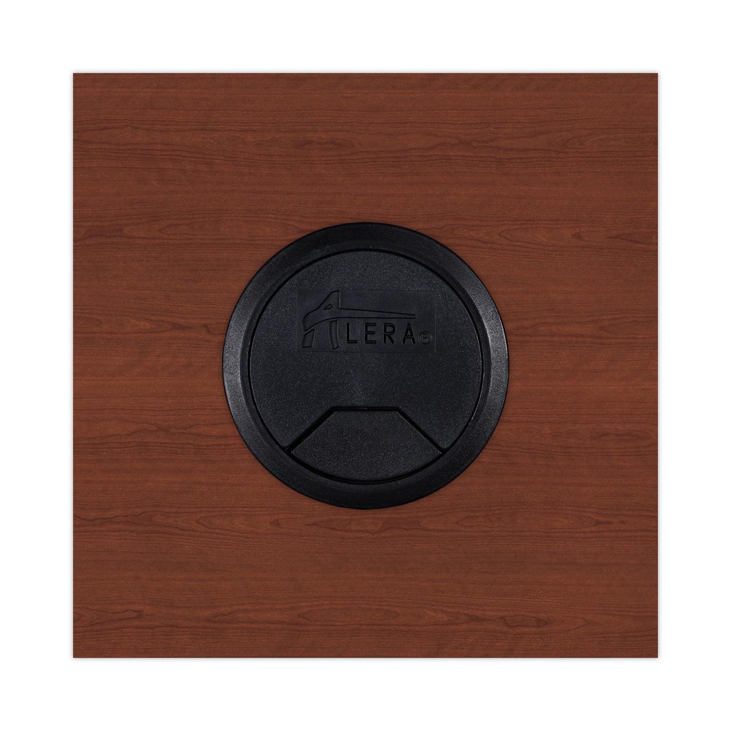 Durable, commercial grade laminate work surface and side panels are water, scratch, and stain resistant. The charcoal accent line under the work surface adds style and a distinctive touch. A protective edge banding helps to prevent damage from bumps. Two grommets for cable and wire management to tuck away your computer and device cords. Full-length modesty panel for added privacy. Base Material: Woodgrain Laminate; CPU Holder/Platform Indicator: No; Caster/Glide/Wheel: Four Leveling Glides; Color Family: Cherry; Edge Detail Profile: 3 mm Protective Edge Band; For Use With: Alera Valencia Series Reversible Return/Bridge Shell and Credenza Shell.
