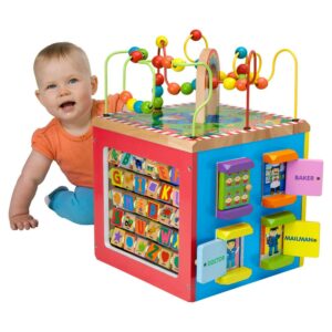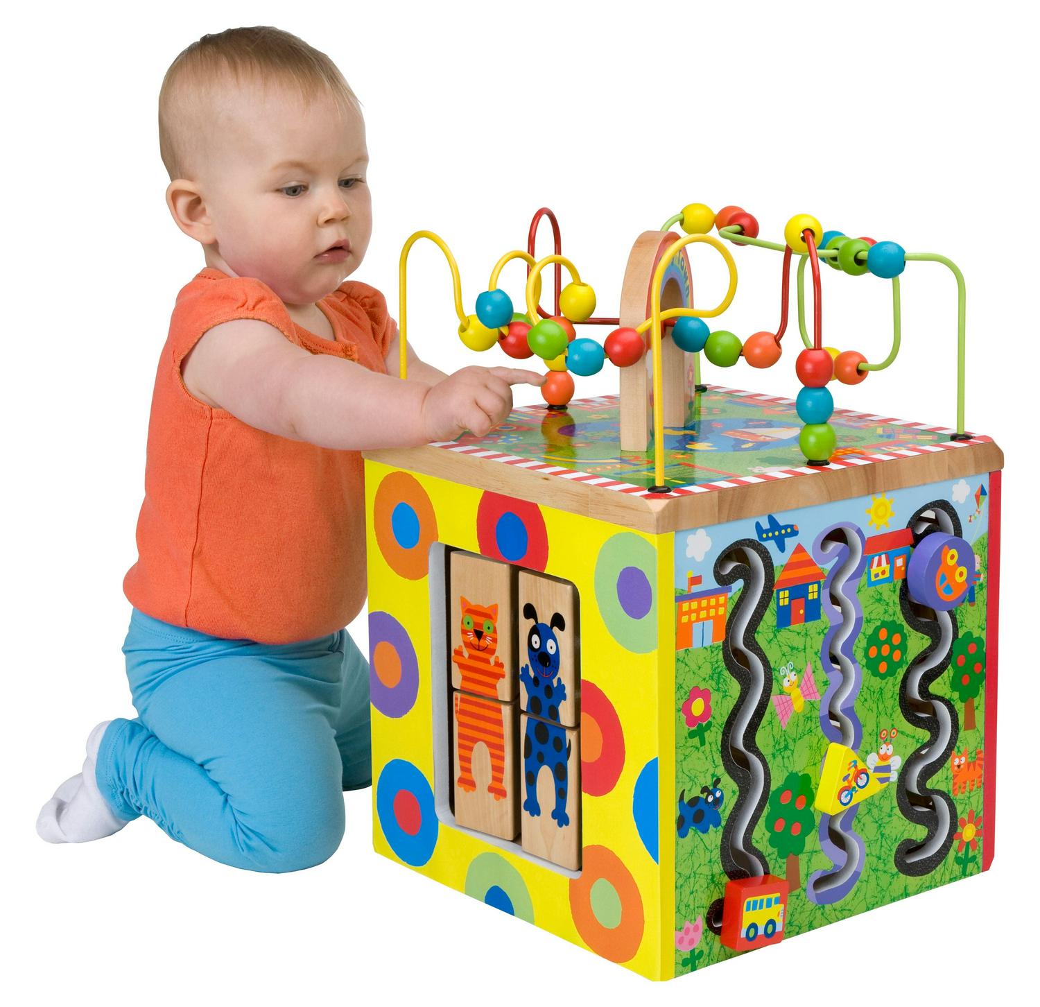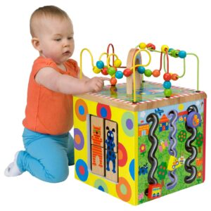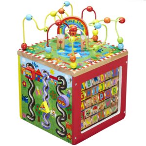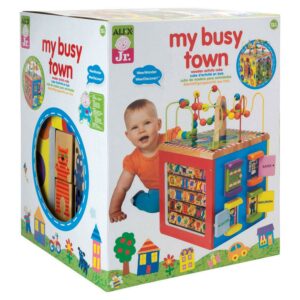 ALEX Discover My Busy Town Wooden Activity Cube has many activities to keep your toddler engaged that are all part of an amazing journey of learning through play. This toy features a sturdy wooden base that will withstand even the most demanding trips into Busy Town. The multi-dimensional activity cube has five different sides of fun games for your little one. With so many different activities, your toddler is sure to stay entertained with this toy for hours. Stable, colorful and fun to look at, the activity center is made of sturdy wood.