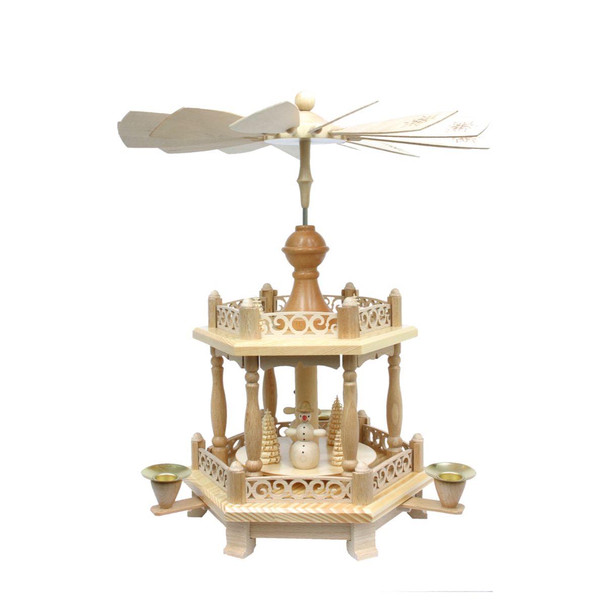 This charming pyramid has a distinctive design of its own. Adorned with a snowman, this traditional table decoration exudes warmth and nostalgia. As candles cast a flickering glow, watch in awe as the rising heat sets the paddles and base in motion, creating a mesmerizing display of holiday cheer. Product Features: Traditional Christmas pyramid candle holder. Perfect finishing touch to your home. Simple yet stylish vibe. Designed by Richard Glaesser. For indoor use only. Dimensions: 14.25″H x 12.5″W x 12.5″D. Materials: wood