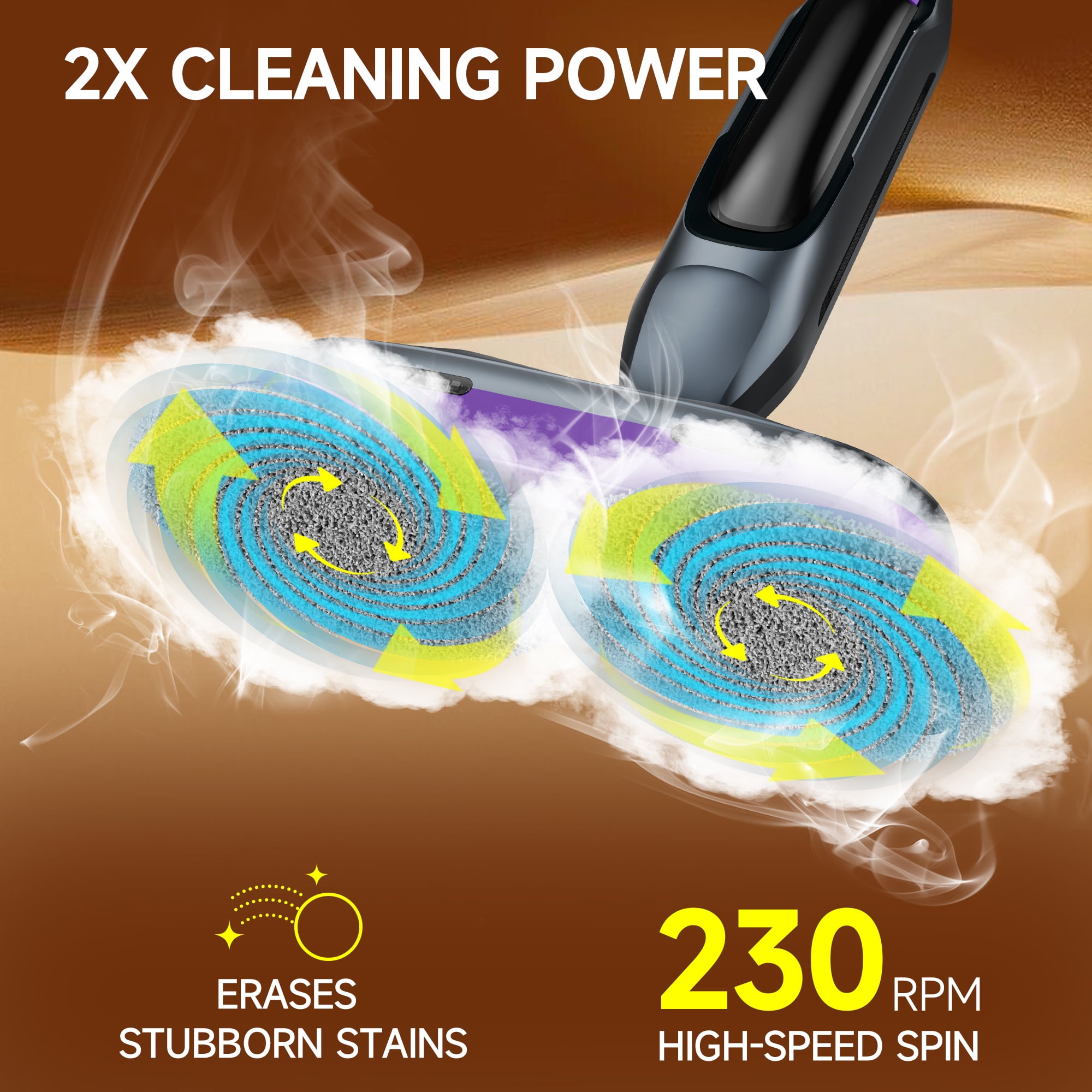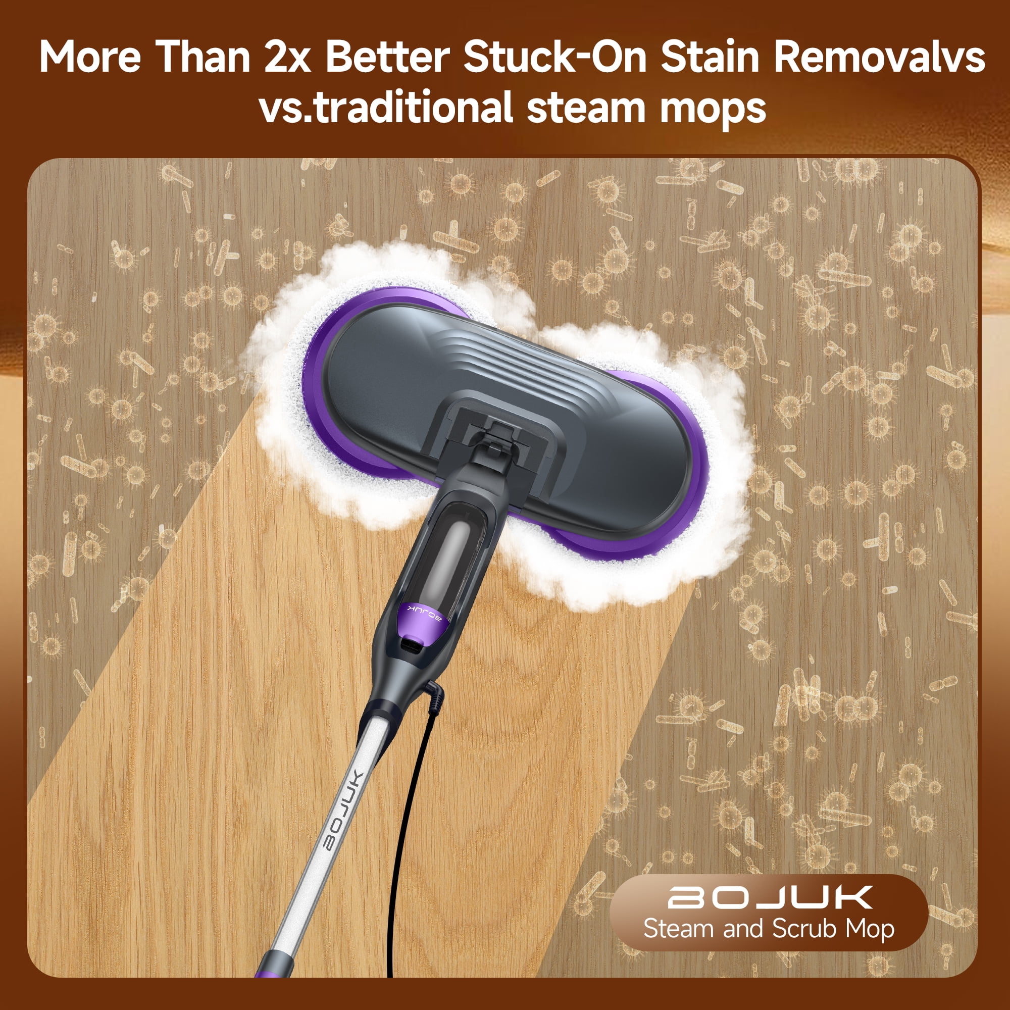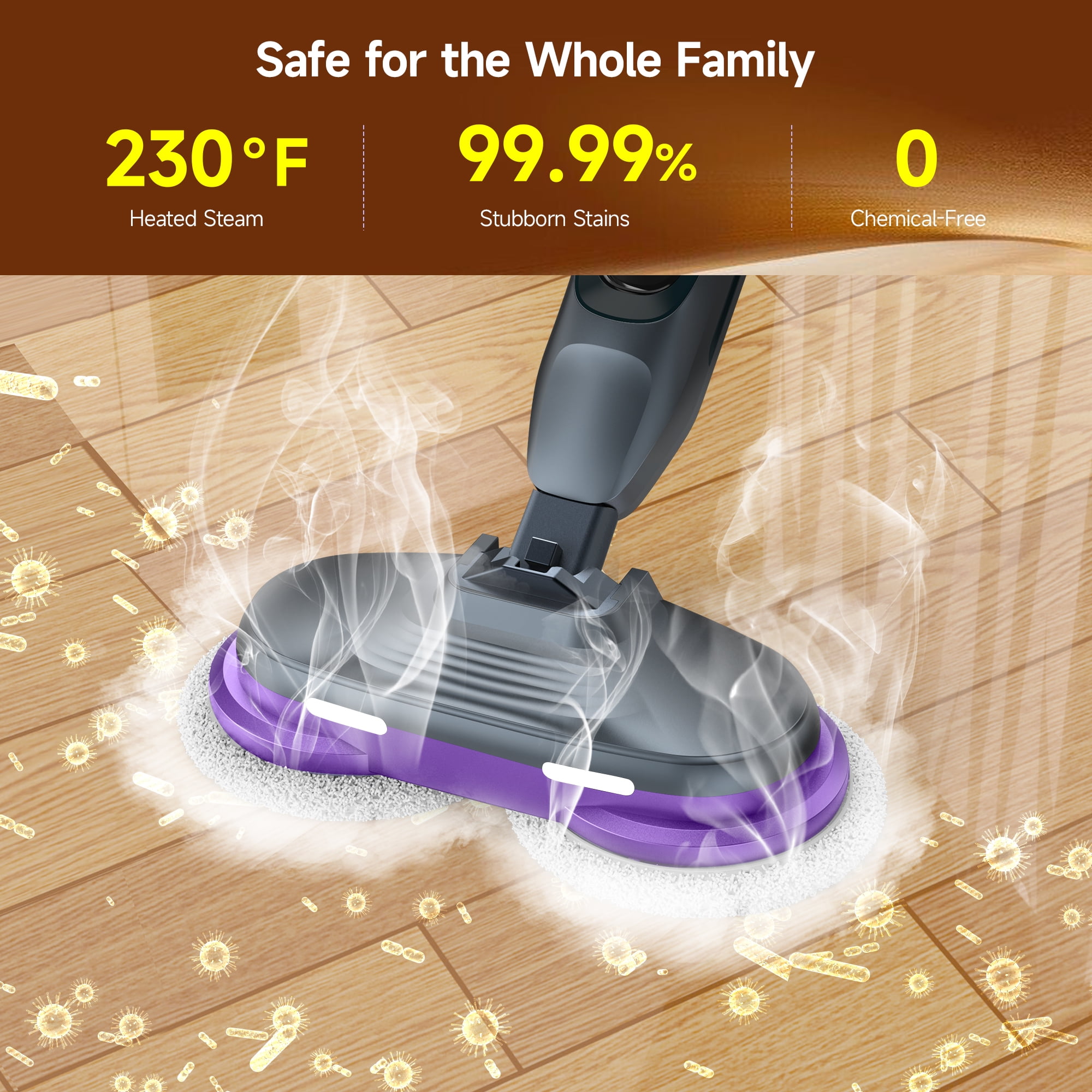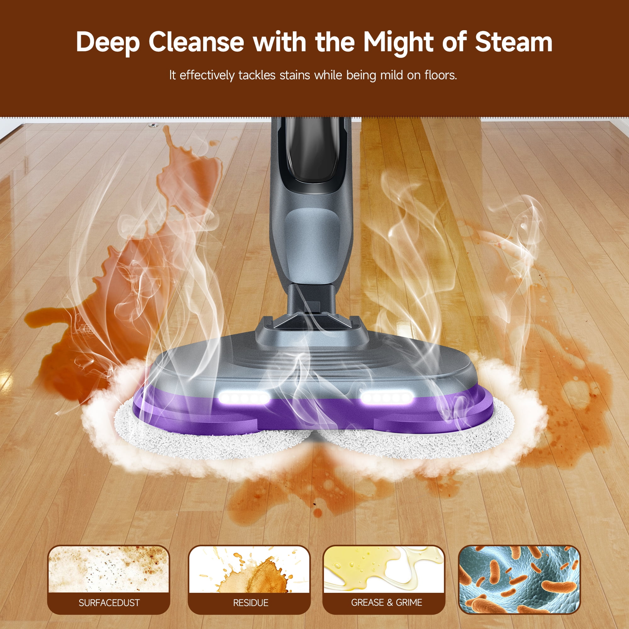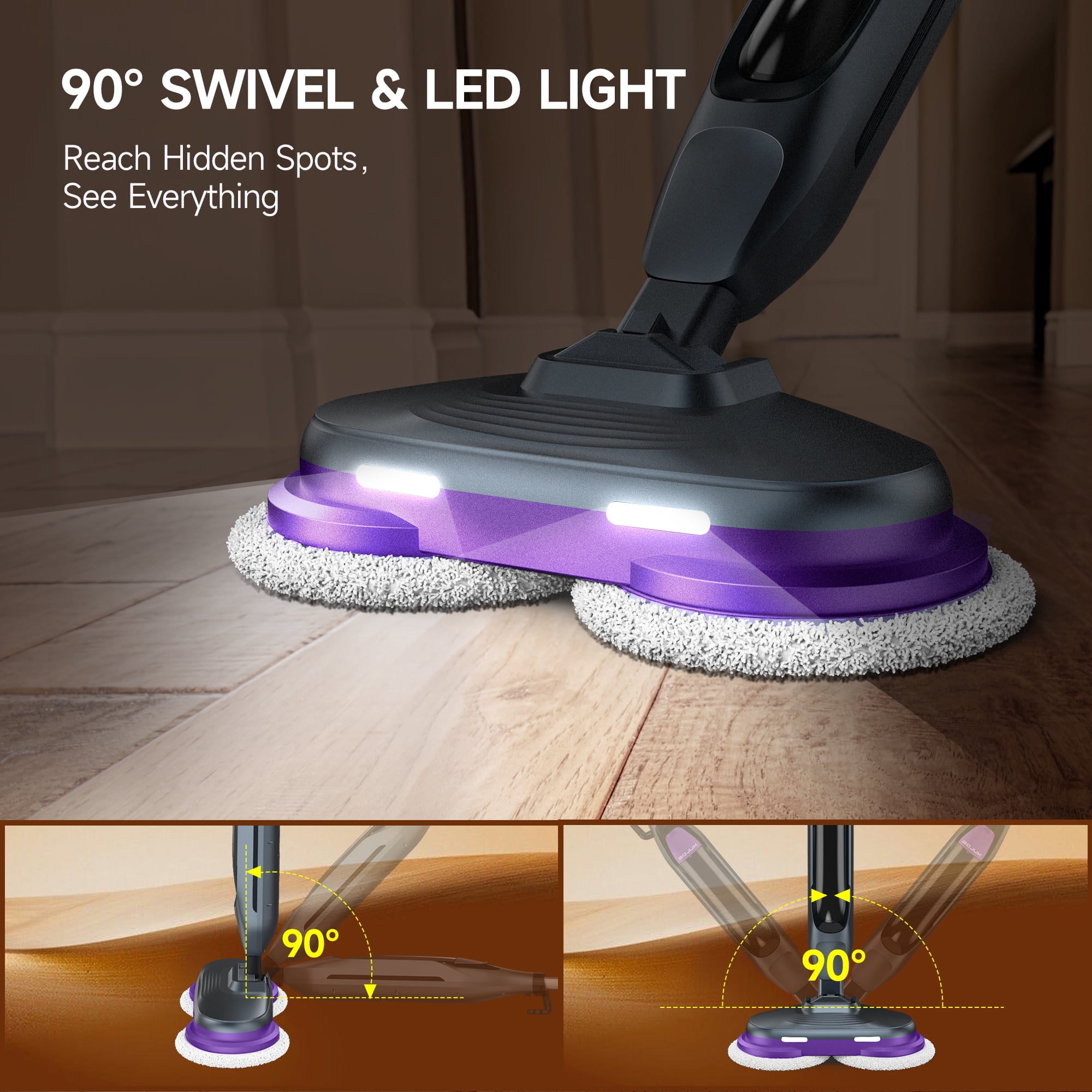 Steam Mop with LED Headlights, Dual Scrubbing Head, Adjustable Steam Control, Anti-Slip Swivel Head