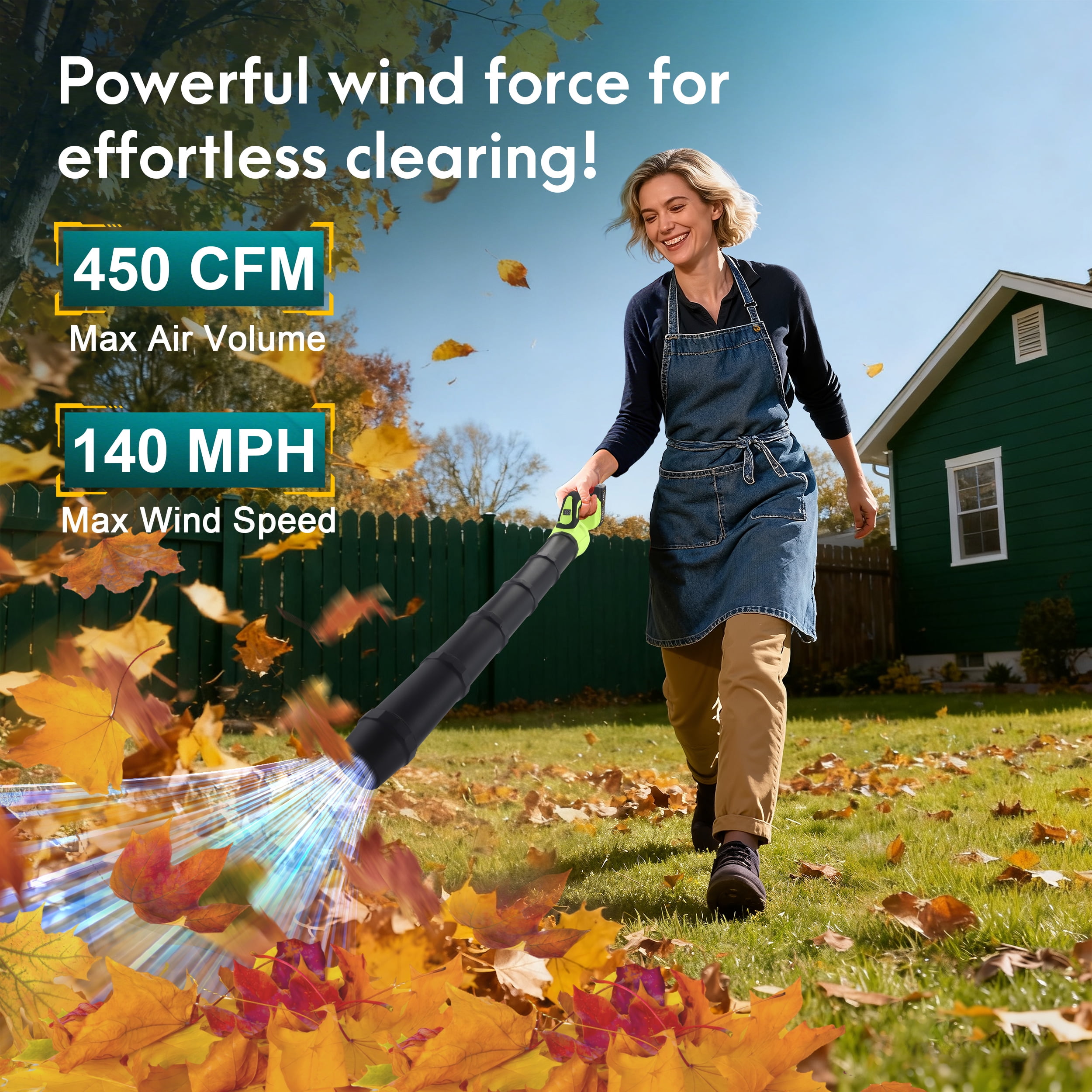 ALILYY Leaf Blower Cordless Blower with 2×4.0Ah Batteries 450CFM Variable Speed Handheld Leaf Blower for Patio,Lawn,Yard,Snow Blowing,Dust,Sawdust,Green
