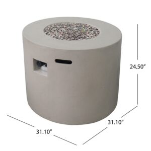 Alison Outdoor 31 Light Weight Concrete Round Gas Burning Fire Pit, Light Gray