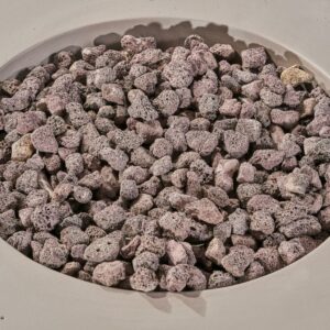 Watch the sun go down and melt into a dazzling starry night while you warm yourself around a cozy fire. Highlight your patio or backyard space with this luxurious fire pit with a conveniently included tank space while keeping your company snug with its all-inclusive seating possibilities. Its simply shaped structure and natural stone finish bring you and your guests together for intimate conversations and endless fond memories. Complete with brilliant lava rocks, this centerpiece is an excellent addition to any outdoor set.