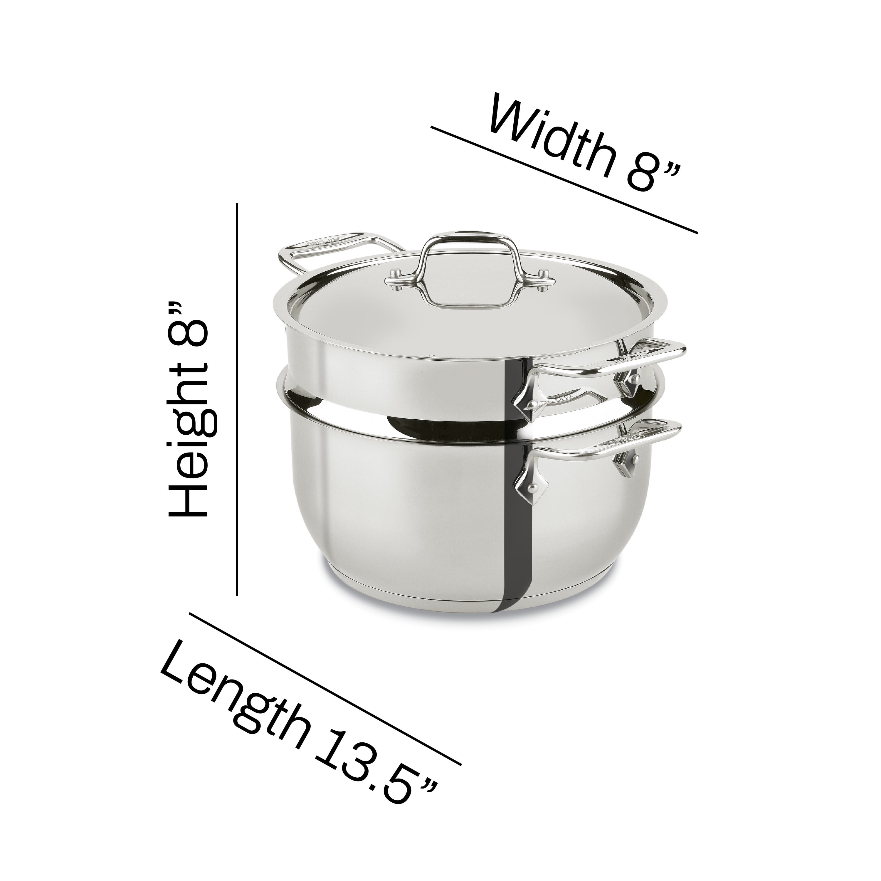Eat healthy without sacrifcing the falvor, our 5-quart stainless steel steamer features tall curved sides for optimal boiling and a perforated insert that allows steam to travel through and cook the food perfectly. Made with heavy-gauge stainless steel for durable and even heat distribution, this steamer pot is built for long-term use. Design You Will Love -Stainless steel construction provides even heating with a polished stainless steel finish construction that is durable and warp resistant. Our double riveted stainless steel handles ensure a secure grip and allow for easy draining and transport. Built to Last – Trusted by generations of chefs and backed by All-Clad’s Limited Lifetime Warranty. Our cookware is oven and broiler safe up to 600°F and compatible with any stovetop, including induction. Dishwasher Safe. Handwashing is recommended. Designed in Canonsburg, PA – USA, Made in China.