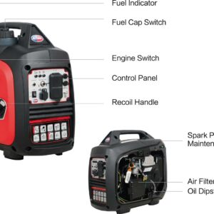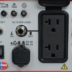 All-Power 2300W portable gas powered inverter generator is great for emergency home power, construction site power, camping power and more! This generator offers a 79cc, air cooled, OHV horizontal engine, and can run for 9 hours at 1/4 load. This model features more power, a more rugged and durable body design, recoil start, and a heavy duty steel frame with fully isolated motor mounts for noise reduction. Safety features such as automatic voltage regulator, low oil shutoff, and backup pull start recoil system. This model comes with a variety of 120V AC and 5V DC outlets for all of your power needs, and small body for easy transport. EPA approved emissions.