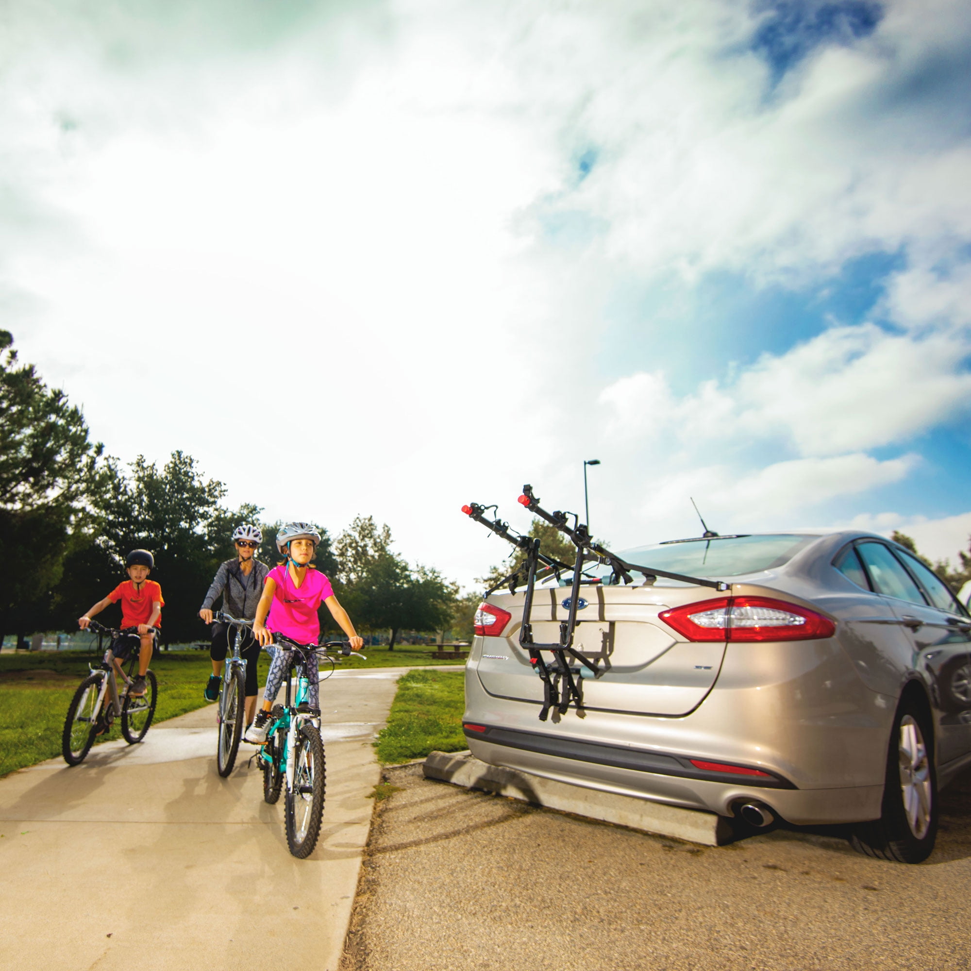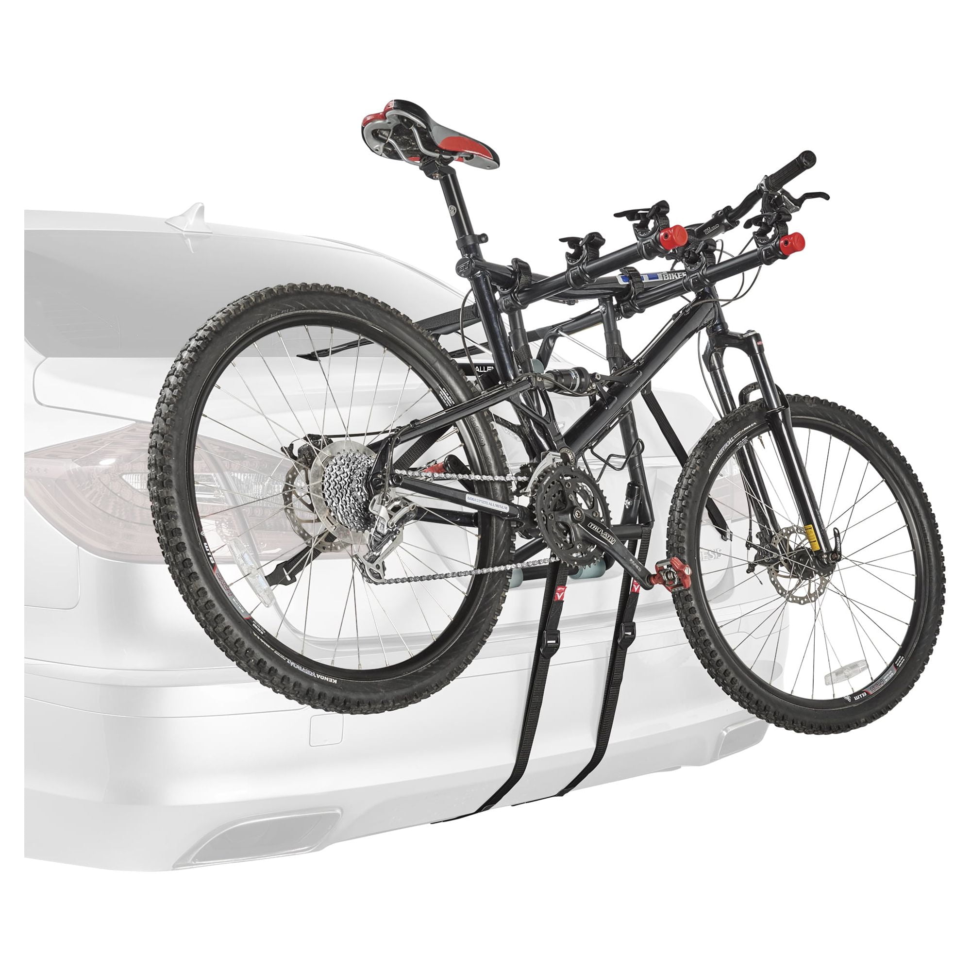Take your bikes on the go with ease Lower frame is designed to keep bikes up and away from the vehicle Individual tie-down cradles are made to keep your bike secure and protected as you drive Sure strap lower strap assures that the bottom hook will stay in place while in use Great for sedans, hatchbacks, minivans, and SUVs Installs quickly and easily Holds up to 3 bikes Capacity: 100 pounds Carry arm width: 11.5 inches Color: Black Dimensions (L x W x H): 28.6 x 14.2 x 4.5 inches Weight: 10.4 pounds Warranty: Lifetime limited warranty