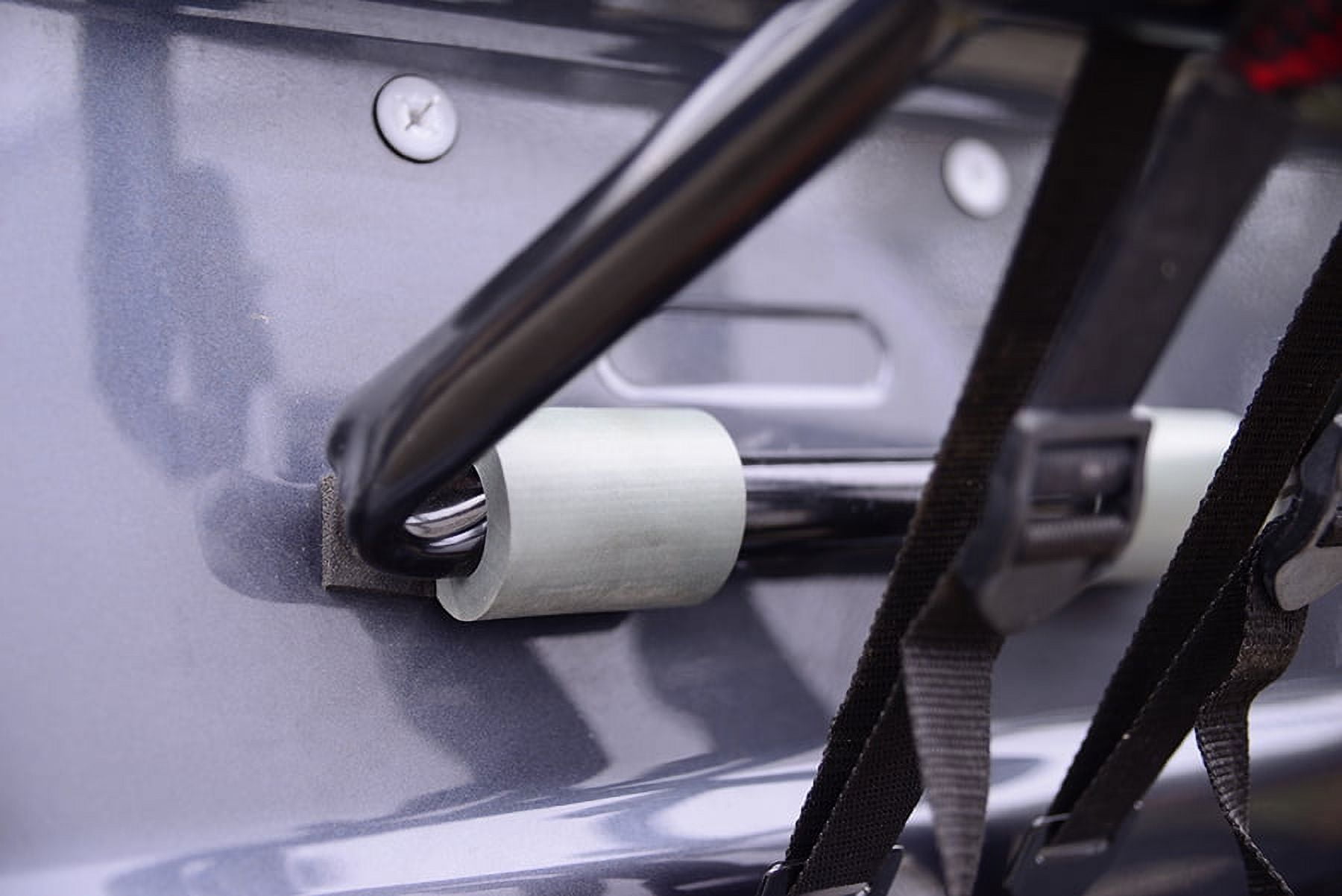 Simple, sturdy design fits most sedans, hatchbacks, minivans, and SUV’s. Consult manufacturer’s site for specific vehicle fit. Padded lower frame protects vehicle, and left and right side straps for lateral stability. Allen Sports Deluxe 3-Bike Trunk Rack:15″ long carry arms easily accommodate up to 3 bicycles (100 lb. max capacity/ 35 lbs. per bike). Individual tie-downs secure and protect bicycles. Fully assembled, installs in seconds. Single configuration design eliminates setup hassles and headaches during installation.