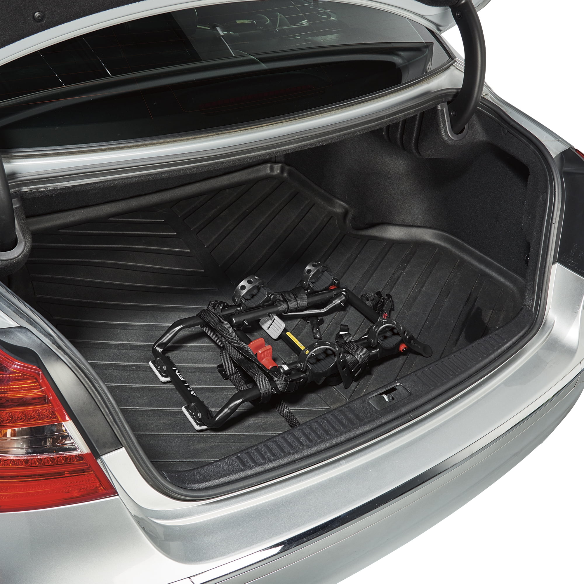 12″ long carry arms easily accommodate up to 2 bicycles (70 lbs. max capacity) Individual rubber strap tie-downs secure and protect bicycles Padded lower frame keeps bicycles away from vehicle Side straps for increased lateral stability Extra large car pads on the Allen Sports bike rack help to distribute bicycles load and protect vehicle finish Comes fully assembled; set up and installs in seconds Patented design bike trunk carrier fits wide range of vehicles (consult manufacturer website for specific vehicle fit information)