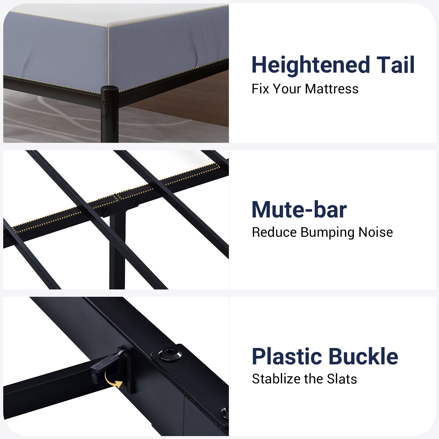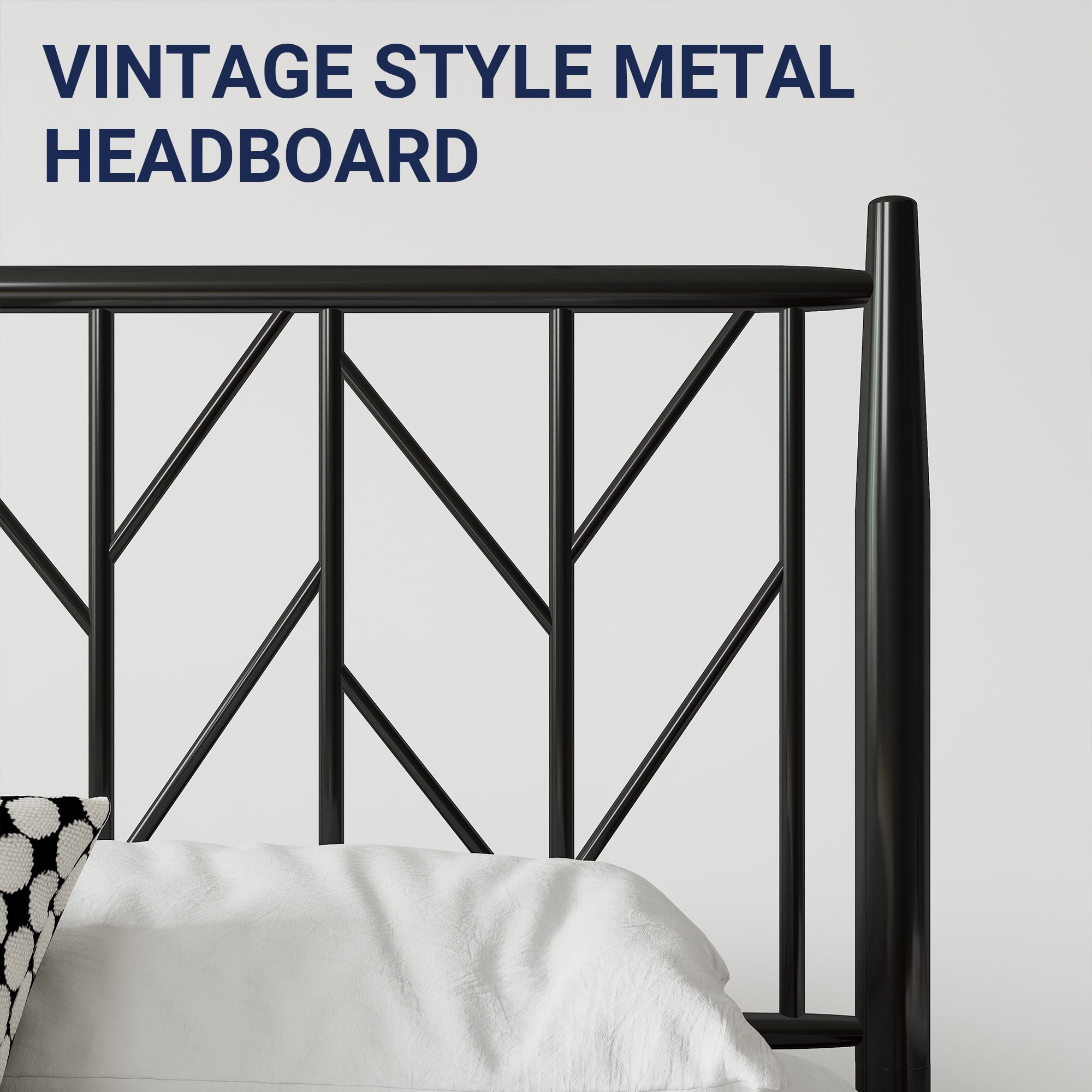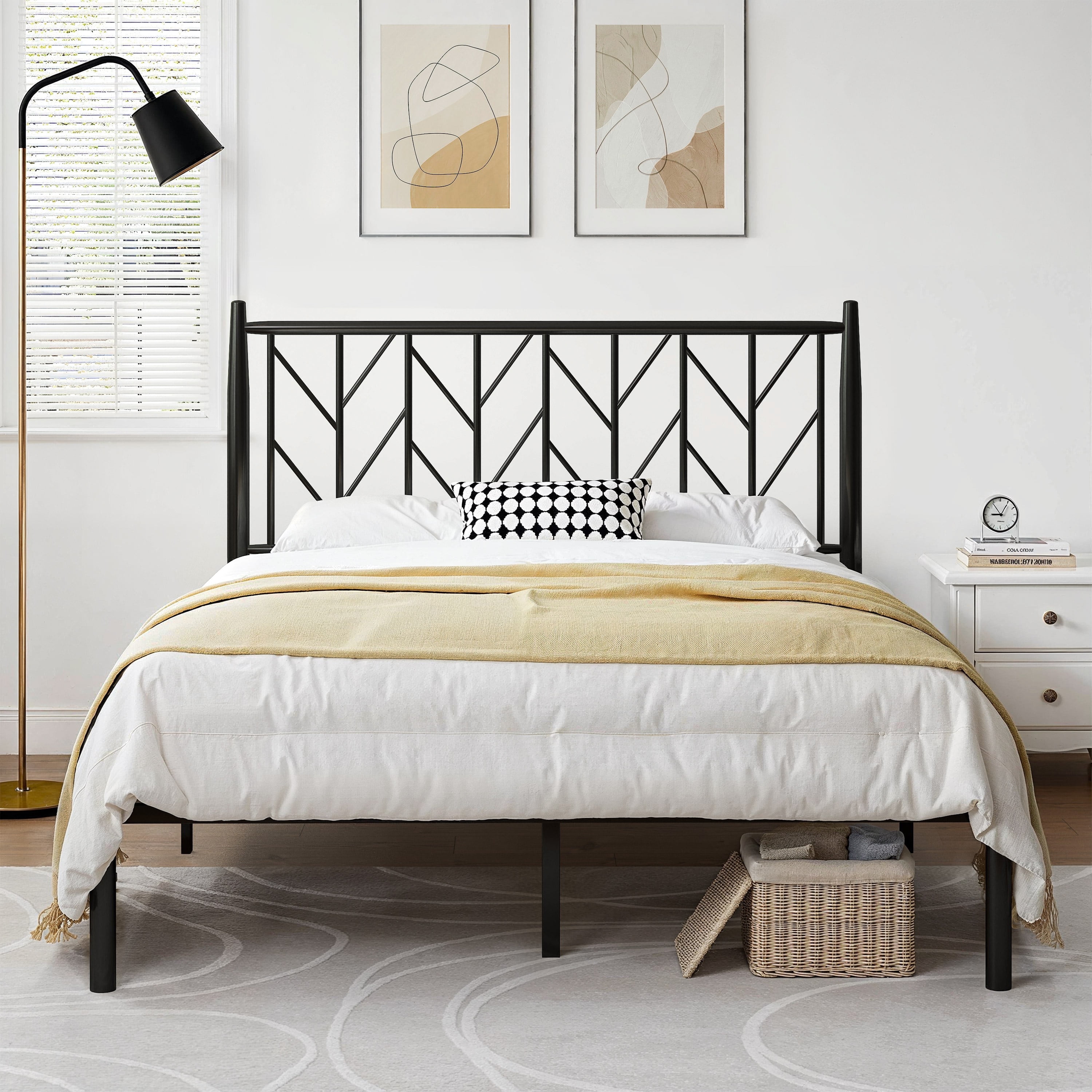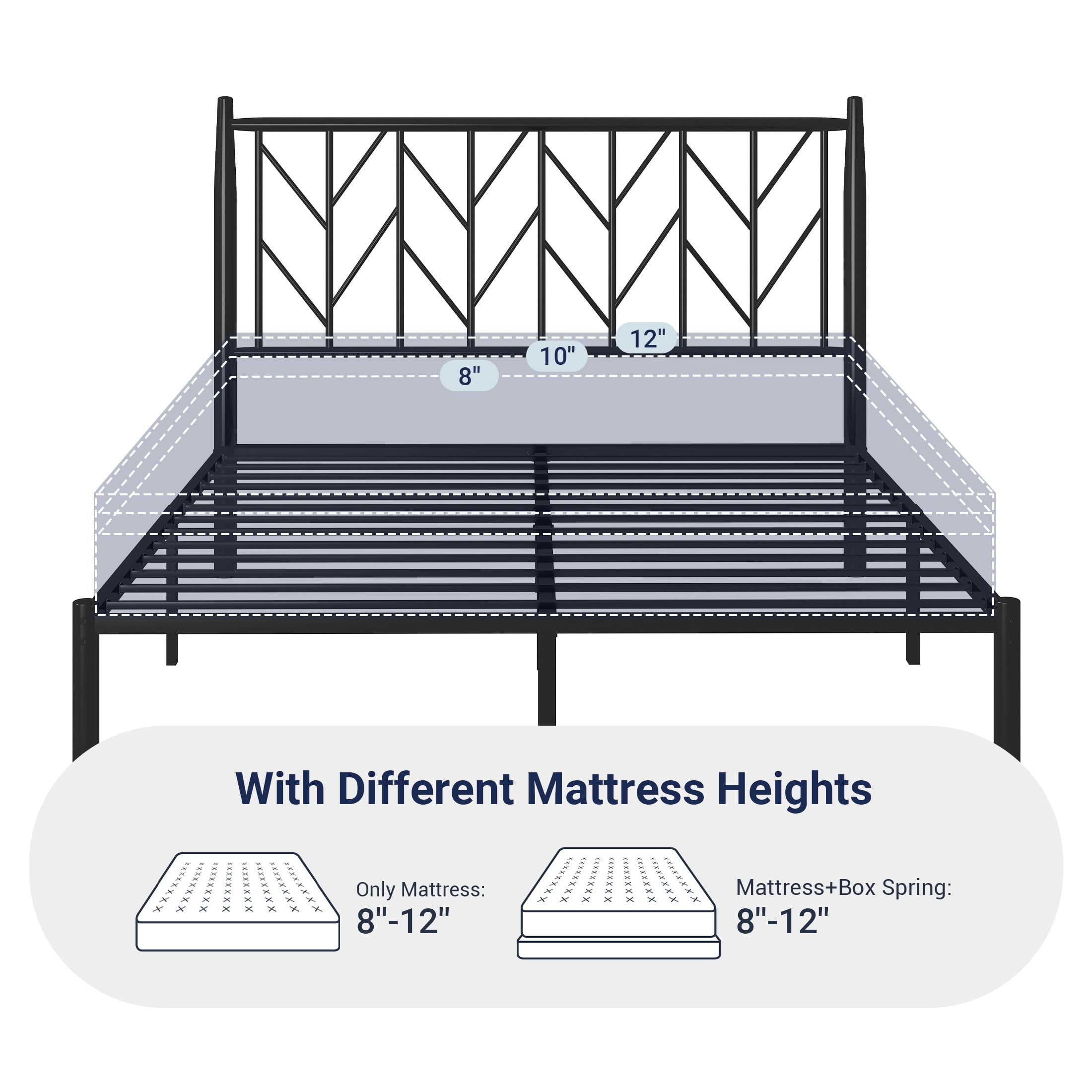 Underbed Storage: 12 inches under-bed storage height, this metal bed frame will provide a large space underneath for storage, making your home well organized.