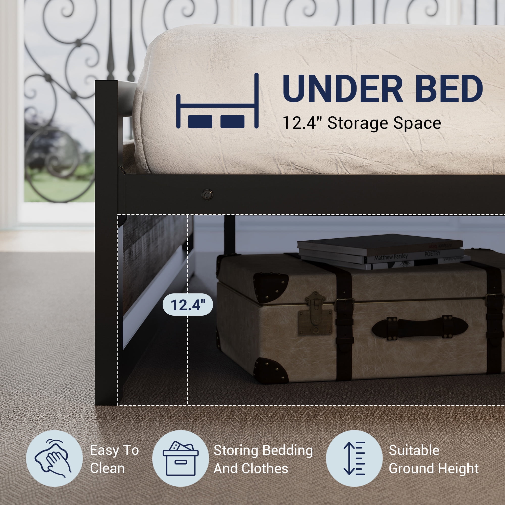 Allewie-Find Furniture that Suits You Best Introducing our versatile metal bed frame with under-bed storage, a harmonious blend of style and functionality. Crafted with durable and sleek metal, this bed frame is not just a foundation for your mattress; it’s a savvy storage solution designed to maximize space in your bedroom. The minimalist design seamlessly integrates into any decor, offering a contemporary and clean aesthetic.
