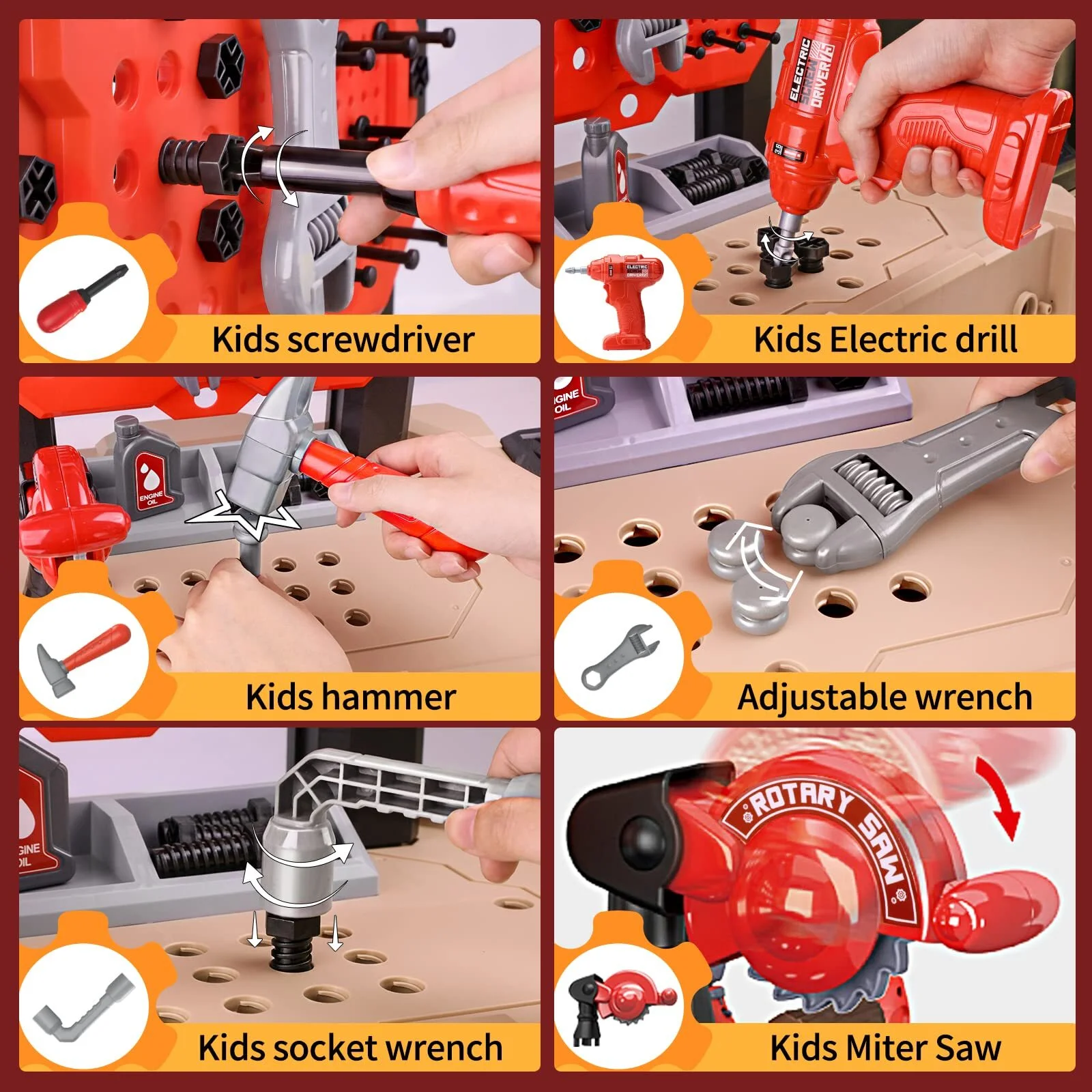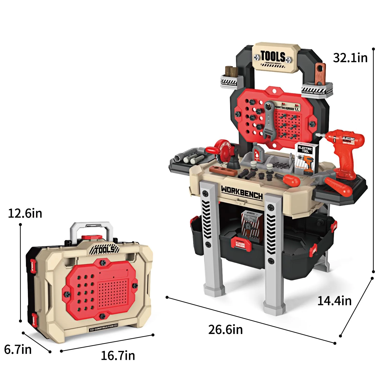 ALLJOY Kids Work Bench with Tools and Electric Drill, 78 Pcs Kids Toddlers Tool Set,Pretend Play Workbench Construction Toys for Boys Girls