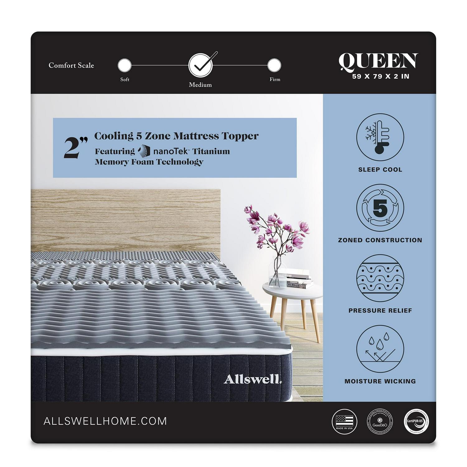 Allswell 2 5-Zone Cooling Titanium Memory Foam Mattress Topper, Queen