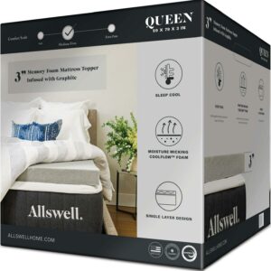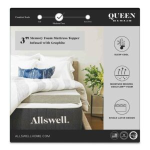 - Allswell 3″ Sleep Cool Memory Foam Mattress Topper Infused with Graphite, Queen