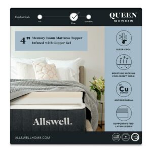 – Allswell 4″ Memory Foam Mattress Topper Infused with Copper Gel, Queen