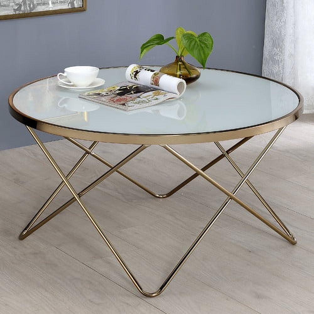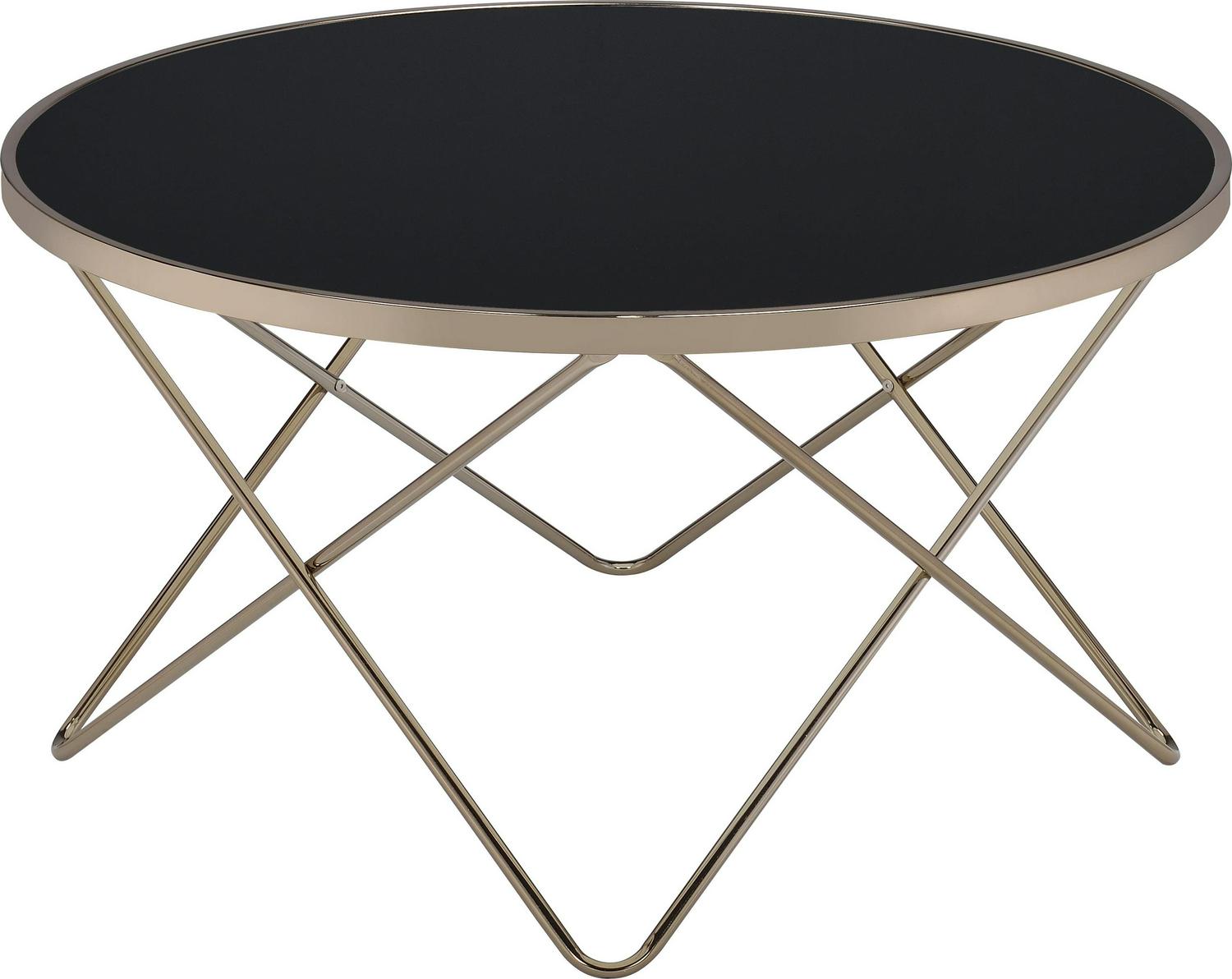 Alluring Coffee Table, Black Glass and Gold- Saltoro Sherpi Update your living room with a functional art piece. This coffee table uses a mid-century inspired base finished in champagne and supports a framed black glass top. The finish and black glass make for a sophisticated look.
