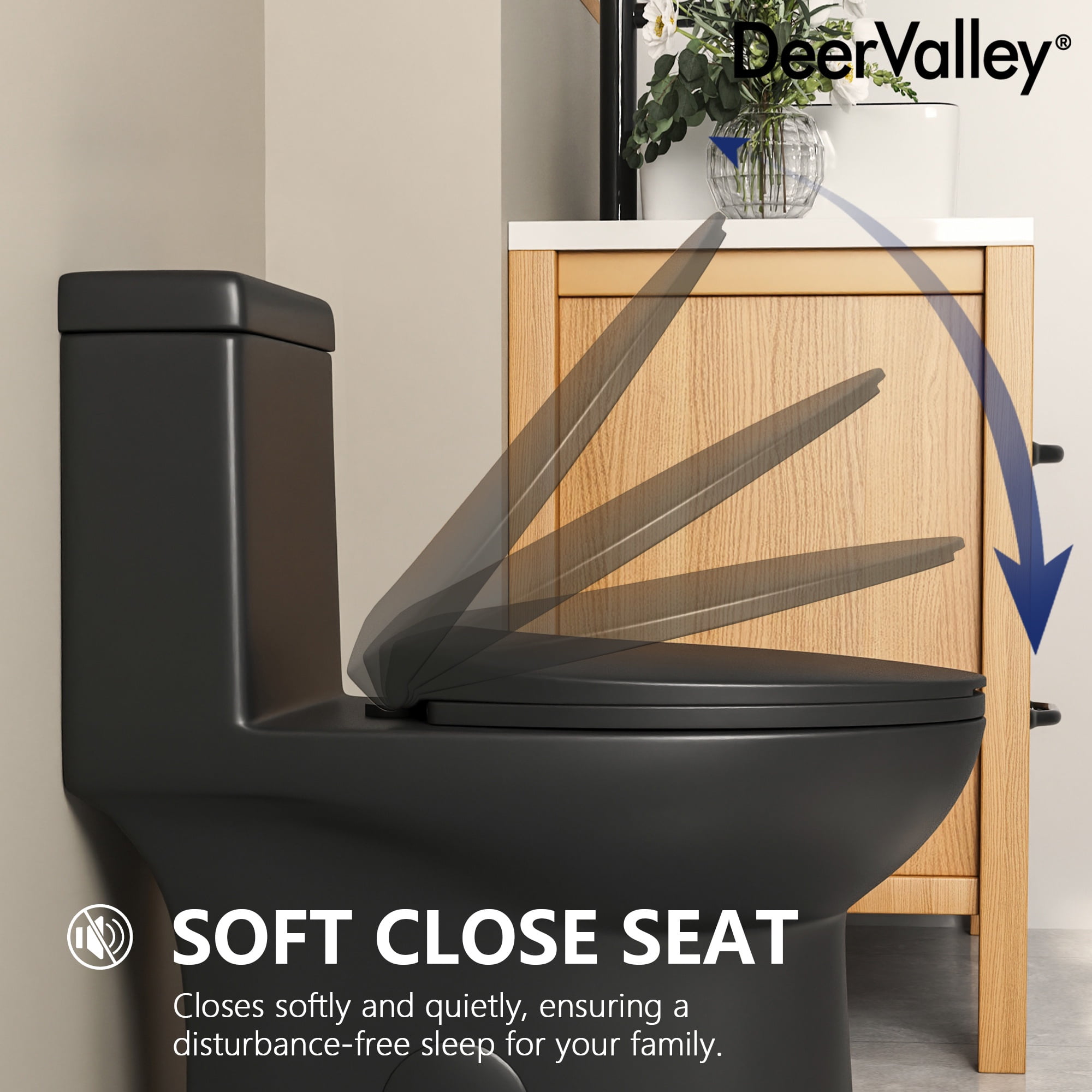 Comfortable seating: this 1-piece toilet offers a comfortable seat height of 16-3/4 in. making it suitable for most users, except for exceptionally tall individuals It’s an excellent choice for small spaces and closets Durable craftsmanship: crafted from ceramic and glazed through high-temperature calcination, this toilet is not only stylish but also highly durable it resists pressure, corrosion and scratches with ease Dual-flush efficiency: DeerValle highly efficient dual-flush toilet allows you to conserve water by choosing between 1.1 GPF or 1.6 GPF for different tasks, its siphon flushing system, combined with a fully glazed flush, delivers powerful and quiet flushing performance, ensuring no clogs, leaks or issues Effortless cleaning: our 1-piece toilet features a seamlessly concealed trapway and a fully glazed surface cleaning is a breeze with no tricky corners or grooves, ensuring a hygienic and trouble-free experience