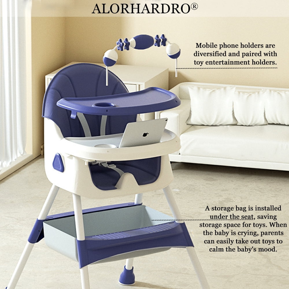 ALORHARDRO high chair on the table is essential for your family during the meal time. It has three seat height settings. The seat has been equipped with a five-point seat belt and tray. This makes it possible for your children to talk at the table. The adjustable design allows your baby to grow with you and make it continuously available. The high chair includes the transition function, so that your growing child can enjoy every meal. As the unisex baby grows up, the footstool will be adjusted according to the baby’s height in the high chair and baby chair mode. In addition, the baby chair mode allows your child to enjoy playing and various activities. The high chair comes with toys, bowls, spoons and other accessories. The fun of eating now begins. The seat cushion and chair can be wiped, which keeps the equipment clean and sanitary at all times.