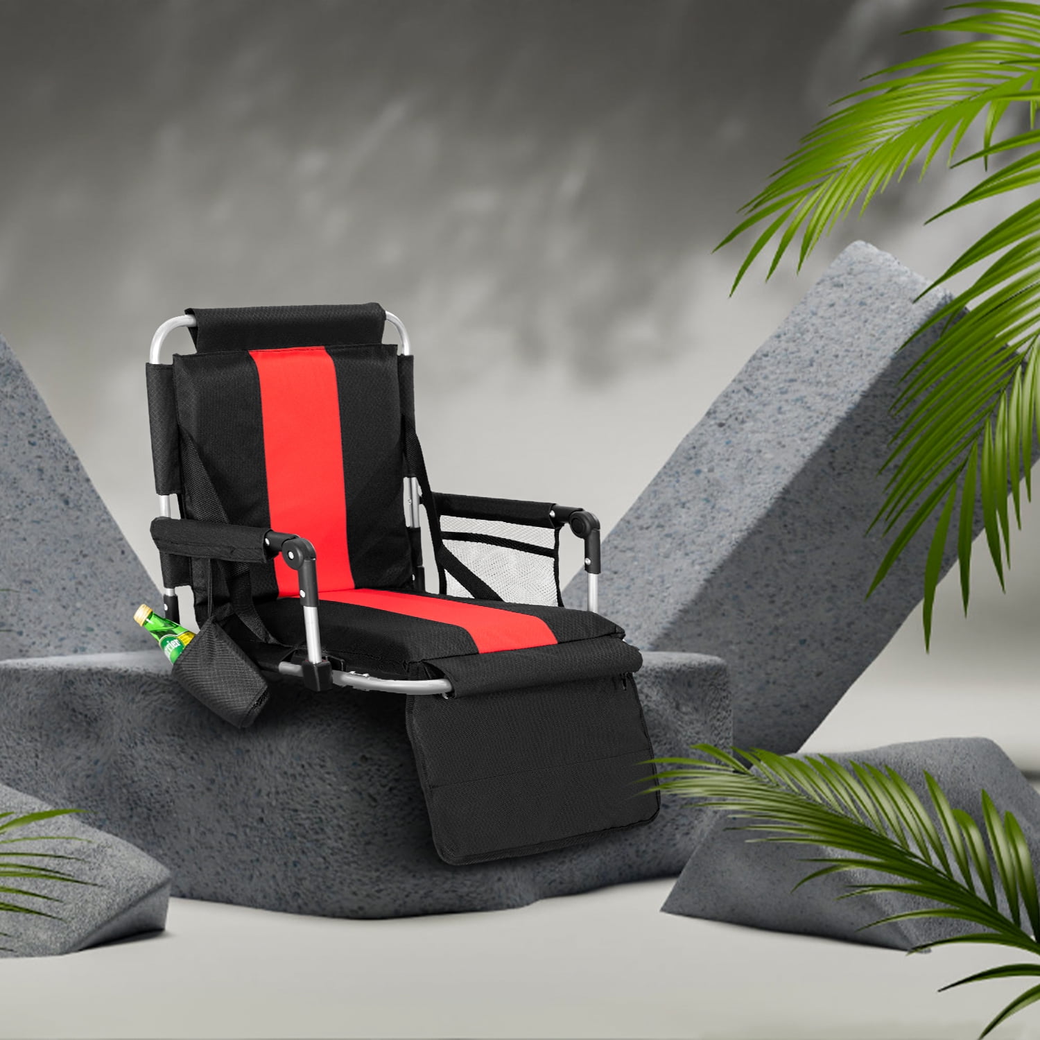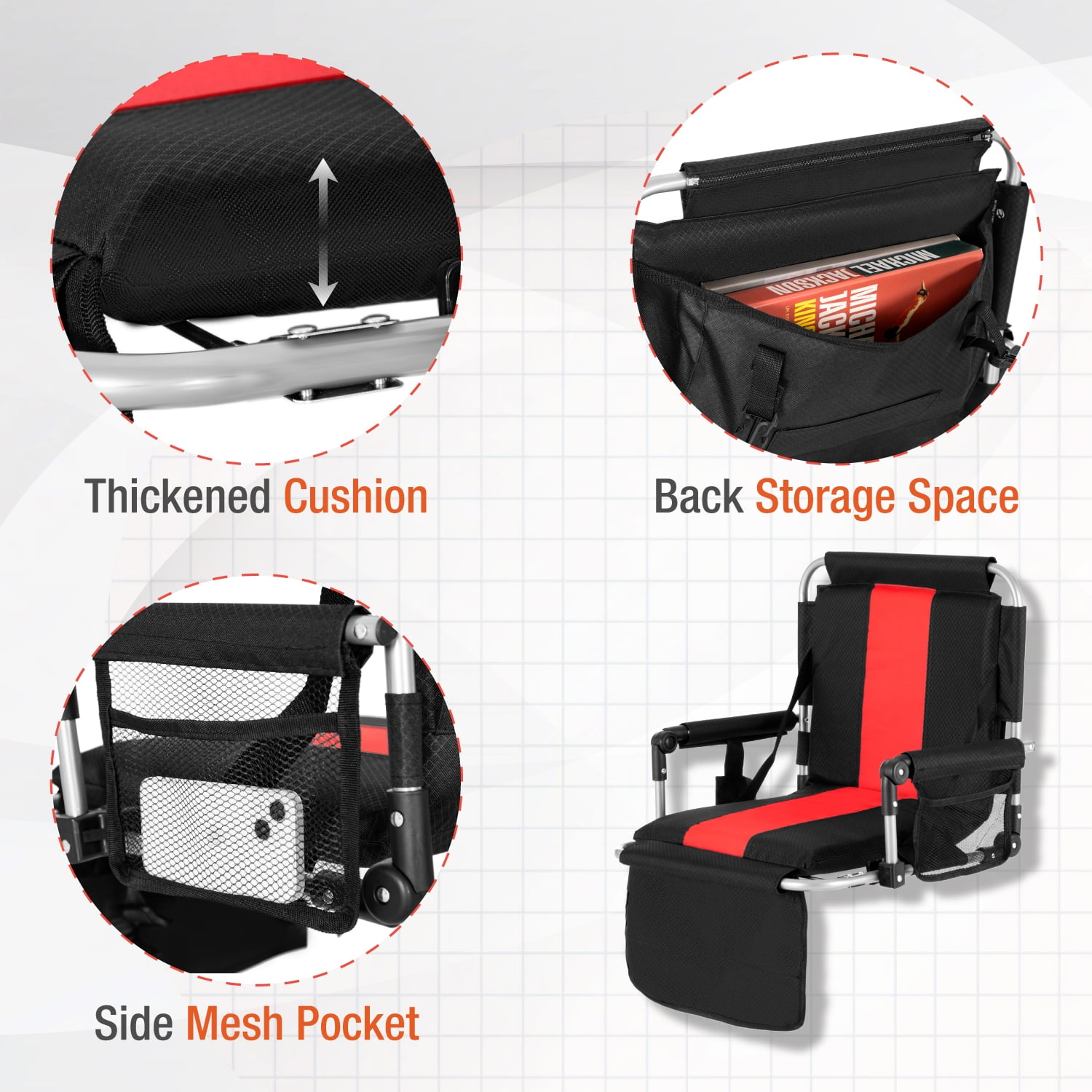 Alpha Camper Folding Portable Stadium Seat Chair for Bleachers with Arm Rest, Black Red