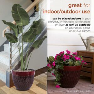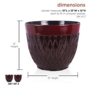 – SET OF TWO DECORATIVE PLANTERS: Feature a classic design in a dark red finish for a decorative way to display your plants and flowers