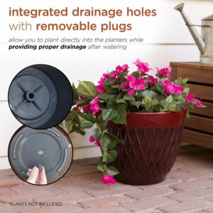 Enhance your indoor or outdoor living space with the Alpine Corporation Set of 2 Decorative Classic Planters. Functional and attractive, these decorative flower planters provide a stylish way to plant your favorite flowers and greenery indoors or outdoors. Their classic design with an elegant dark red finish creates a natural stone look that will complement any decor in your entryways, patios, foyers, living rooms, porches, gardens, flowerbeds, and more. Featuring integrated drainage holes with removable plugs, you can conveniently plant directly into the planters and ensure your plants are provided with proper drainage after watering. Constructed from durable materials, these stylish planters offer years of quality use. Both planters measure 15″ x 15″ x 12″ for the perfect fit in compact spaces.
