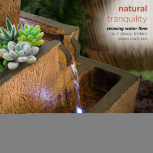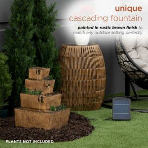 Enhance your indoor or outdoor living space with the Alpine Corporation Rustic Cascading Fountain. Functional and attractive, this multi-tier floor fountain featuring a classic design with a rustic brown finish and realistic stone textures provides a tranquil, soothing, and elegant addition to any indoor or outdoor setting including patios, living rooms, gardens, backyards, sunrooms, and more. It features a dazzling glow of warm white LED lights and soft, natural sounds of water cascading down tiers to create a calm and relaxing atmosphere. For quick installation and easy operating, all necessary parts as well as a pump are included, and both the lights and water pump are powered by an energy-saving solar panel. Constructed from durable polystone and fiberglass, this resilient fountain is weatherproof and rust-resistant to offer years of quality use. The fountain measures 13″ x 13″ x 17″ for the perfect fit inside or outside your home.