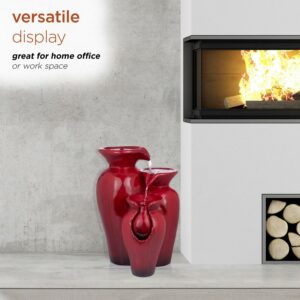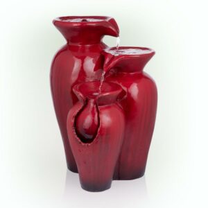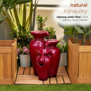 – OUTDOOR 3-TIER FOUNTAIN: Features bright red tiered jars with an interior pump that keeps the water flowing – just plug it in!