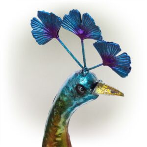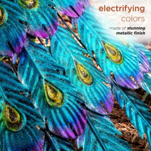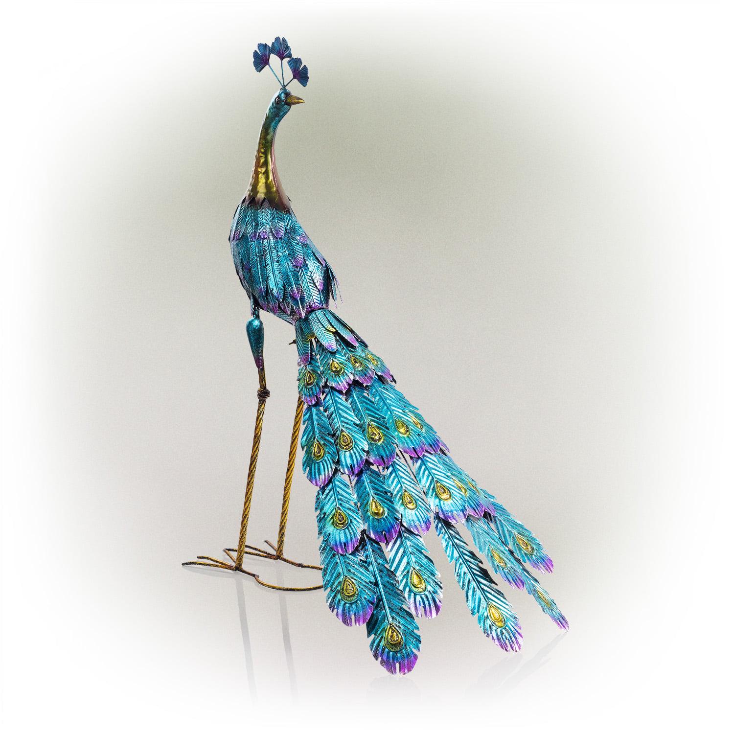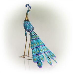 Enhance your indoor or outdoor living space with the Alpine Corporation Metal Peacock Garden Statue. Elegant and decorative, this stylish peacock statue featuring electrifying multicolored feathers with a stunning metallic finish adds a bold accent to any outdoor setting such as gardens, entryways, patios, backyards, pathways, decks, and more. It can also be used in your flowerbeds, as a table centerpiece, or as part of your home’s interior decor, and you can add one or multiple peacock statues to create an beautiful display. Constructed from durable metal, this gorgeous peacock statue offers years of quality use. The statue measures 26″ x 17″ x 37″ for the perfect fit inside or outside your home.