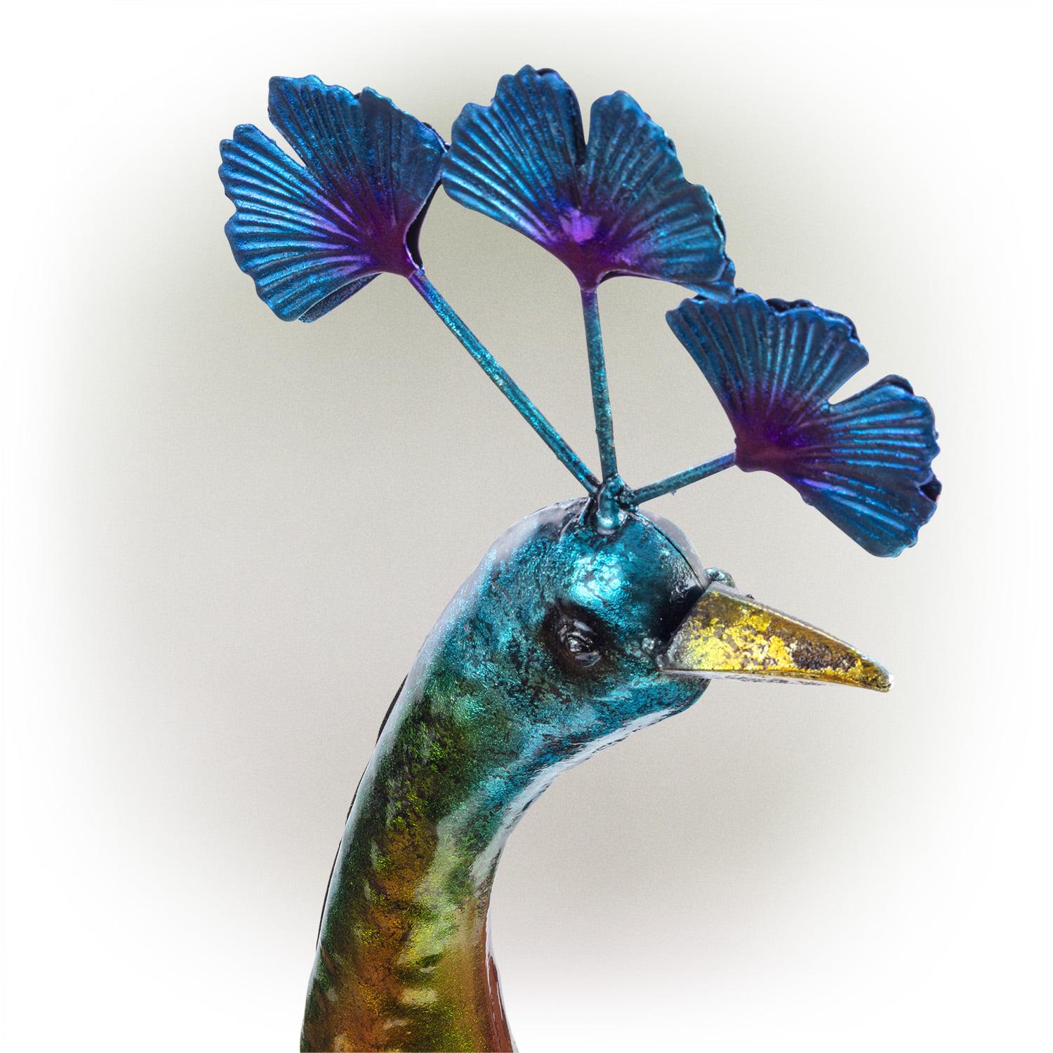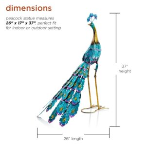 Alpine Corporation 26 x 17 x 37 Metal Peacock Garden Statue, Multicolor