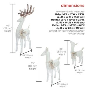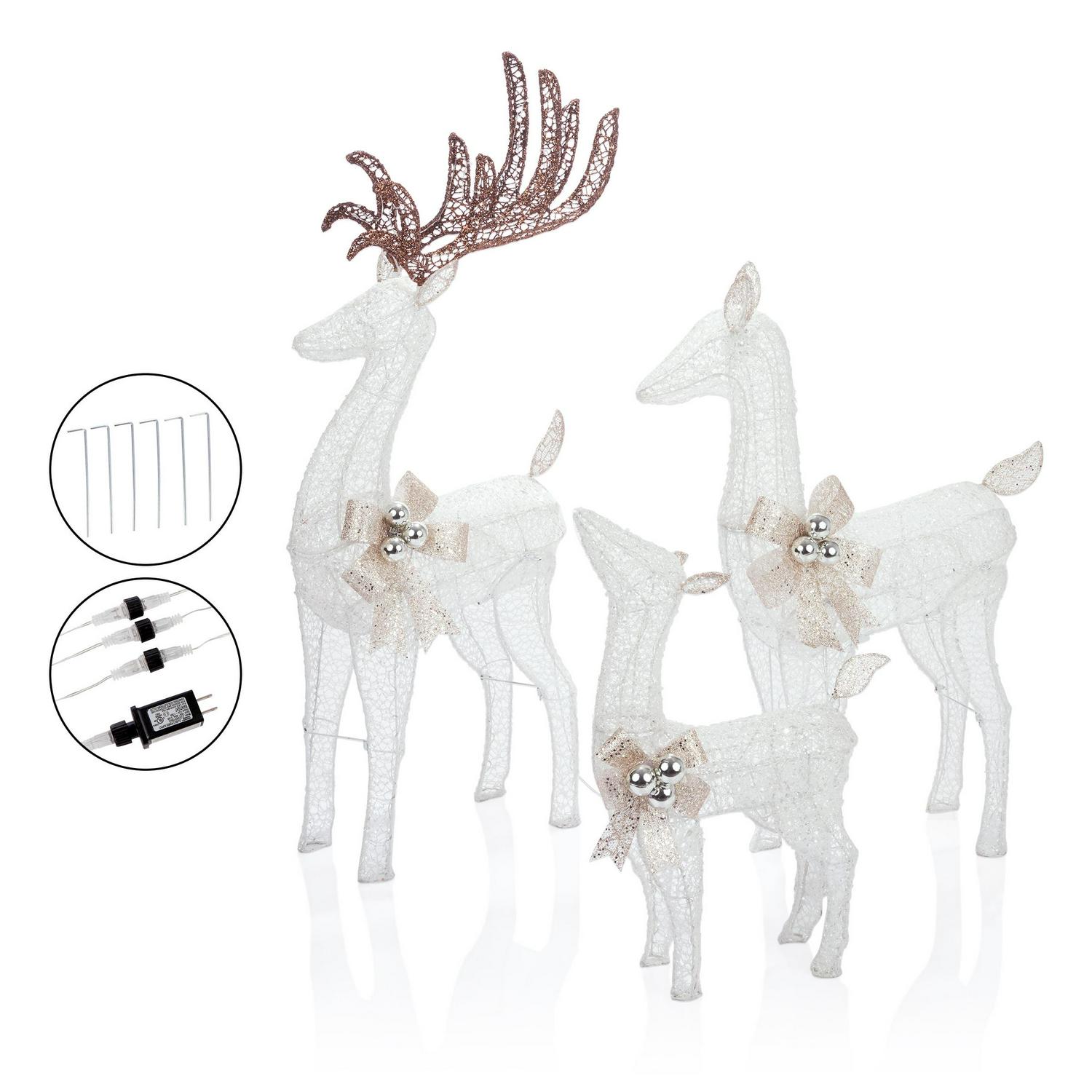 Alpine Corporation 3-Piece Light up Mesh Reindeer Family Holiday Statue Set Decoration, White