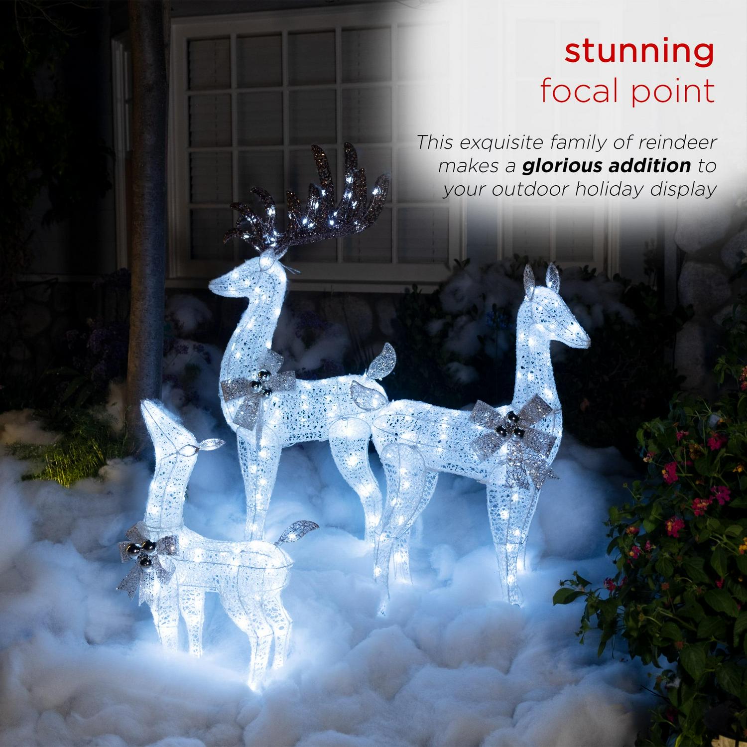 – STUNNING FOCAL POINT: This exquisite family of reindeer makes a glorious addition to your outdoor holiday display