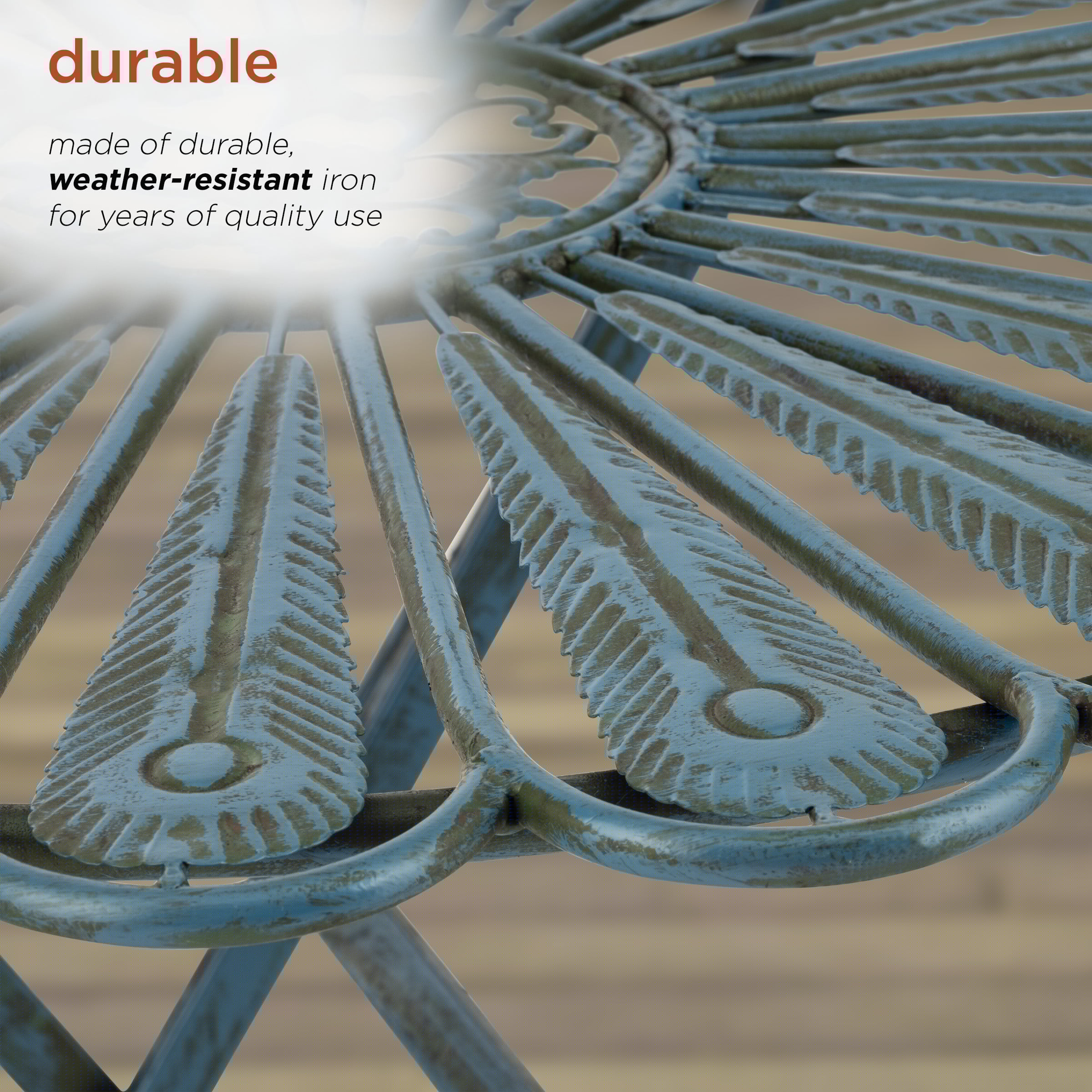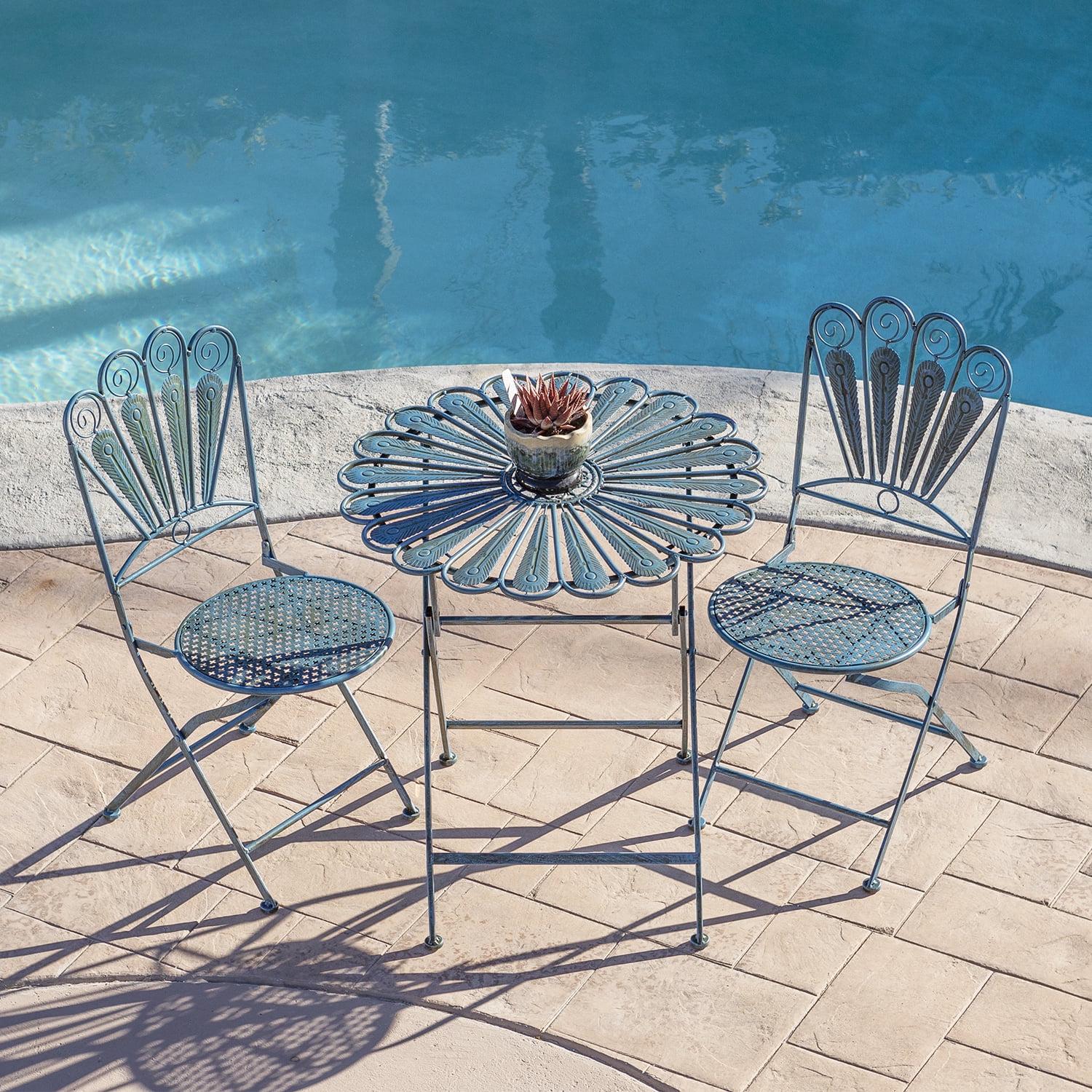 – Peacock-inspired metal bistro set includes one round table and 2 matching chairs, perfect for your backyard, patio, deck, or garden