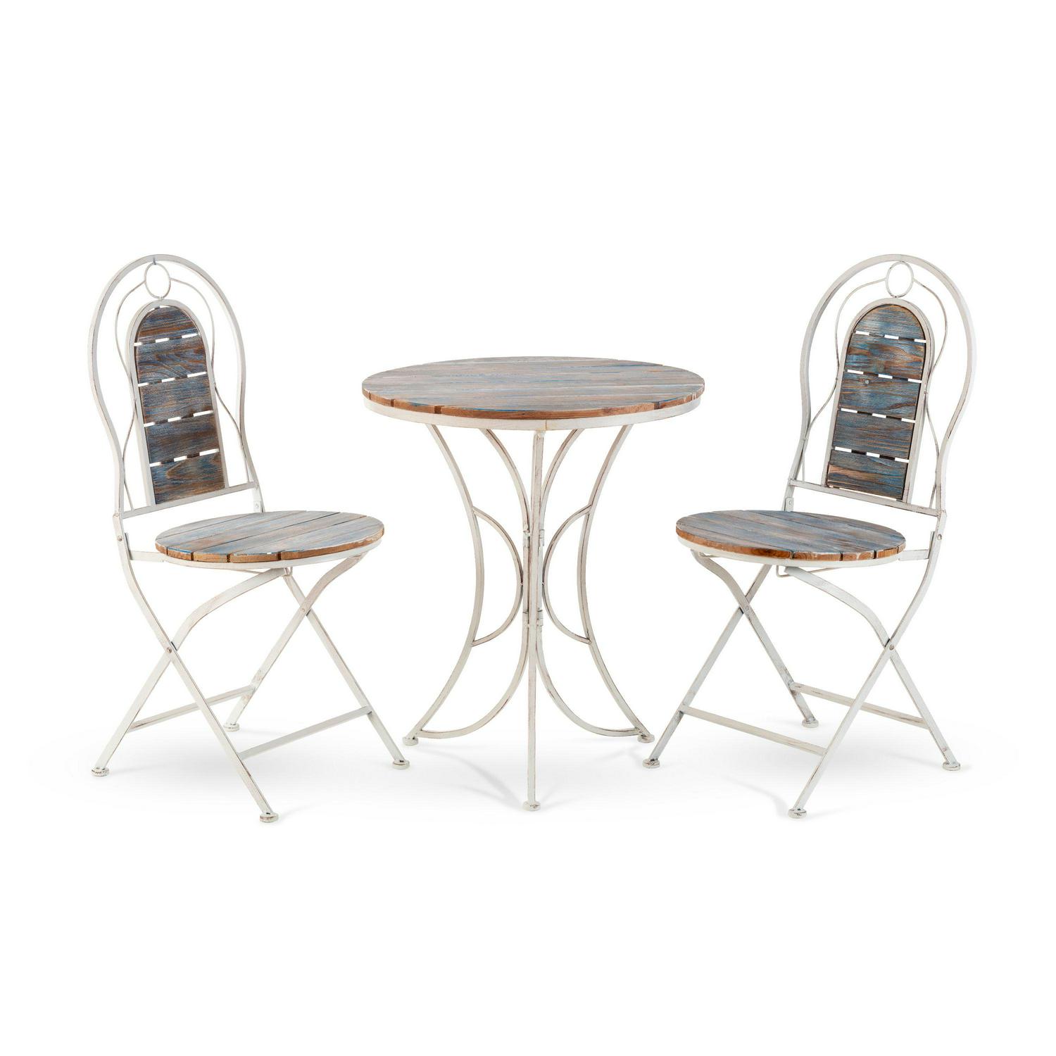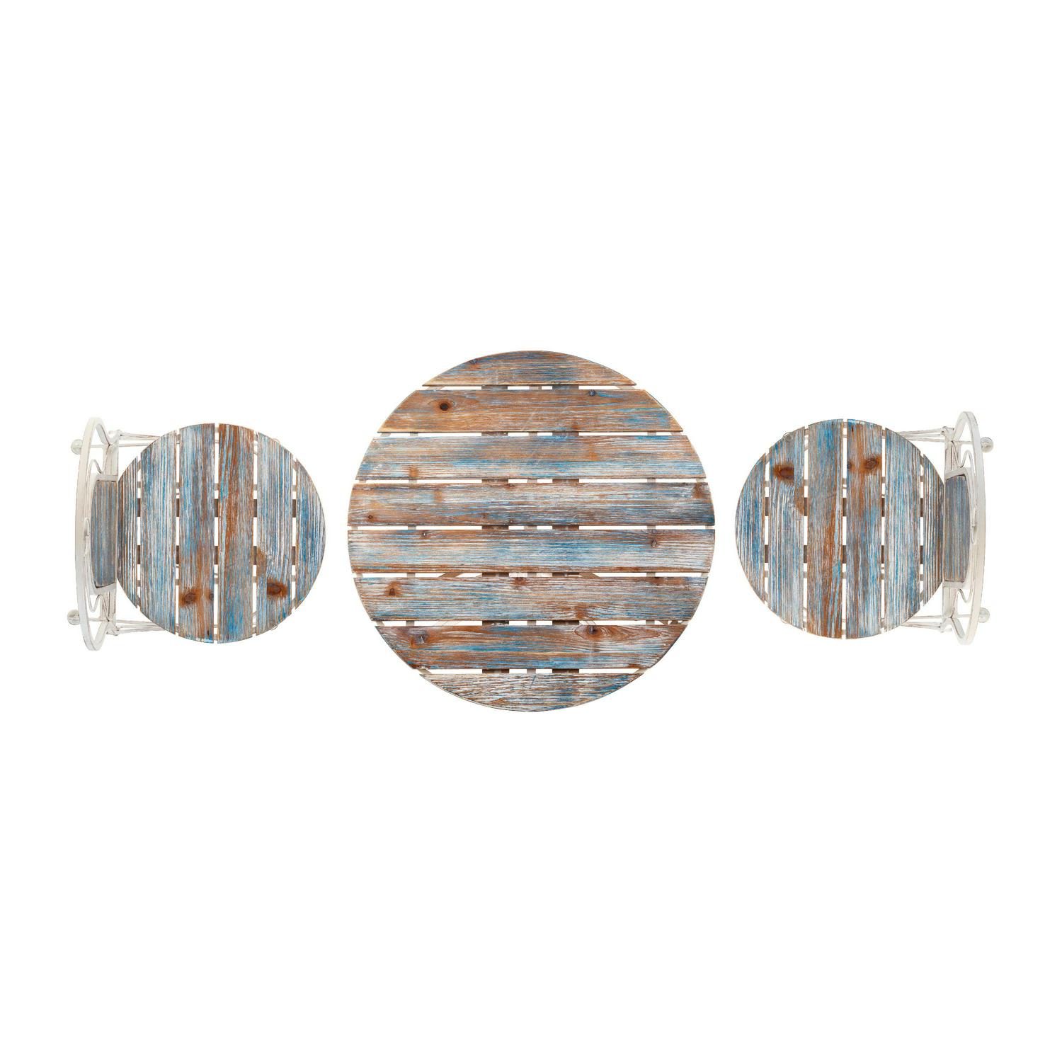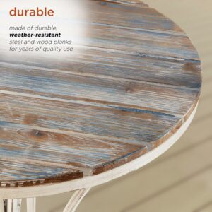 Alpine Corporation 3-Piece Outdoor Patio Rustic Bistro Set, Durable Steel and Wood, Blue